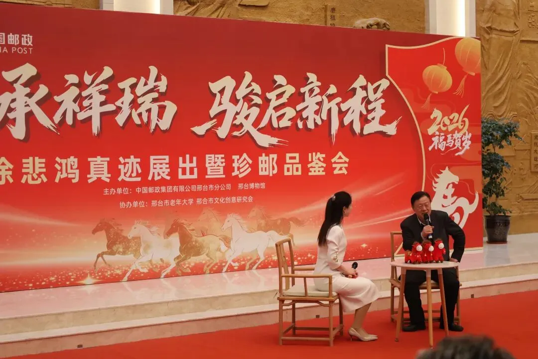 活动现场,国画大师徐悲鸿的嫡孙徐小阳先生接受了采访,深情回忆了大师的从艺之路,讲解了大师的艺术风格,并泼墨挥毫,给观众送上祝福,祝愿邢台人民马年吉祥,马到成功。