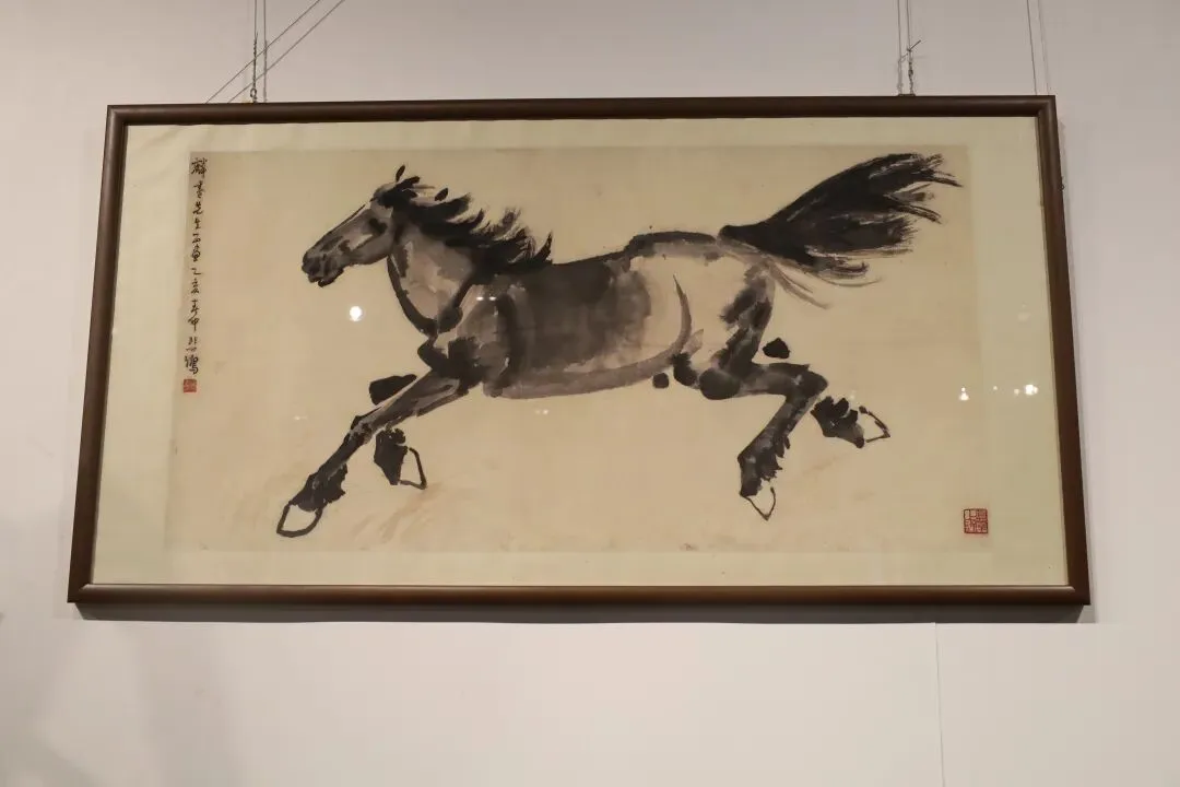 另一幅作品《赠陶麟书》,是上一世纪四十年代徐悲鸿为报答恩人陶麟书的养育与自助之恩而创作的,不仅是一件艺术精品,更承载着大师的深厚感情。画中奋蹄奔扬的骏马,不仅展现了马的动态之美,而且奔马所承载的昂扬斗志、奋进姿态与马年“骏业肇兴、龙马精神”的吉祥寓意完全契合,在为新春增添了浓厚的生肖雅韵的同时,大师真迹马踏邢台,也给古老的井方大地带来了昂扬奔放的韵动。