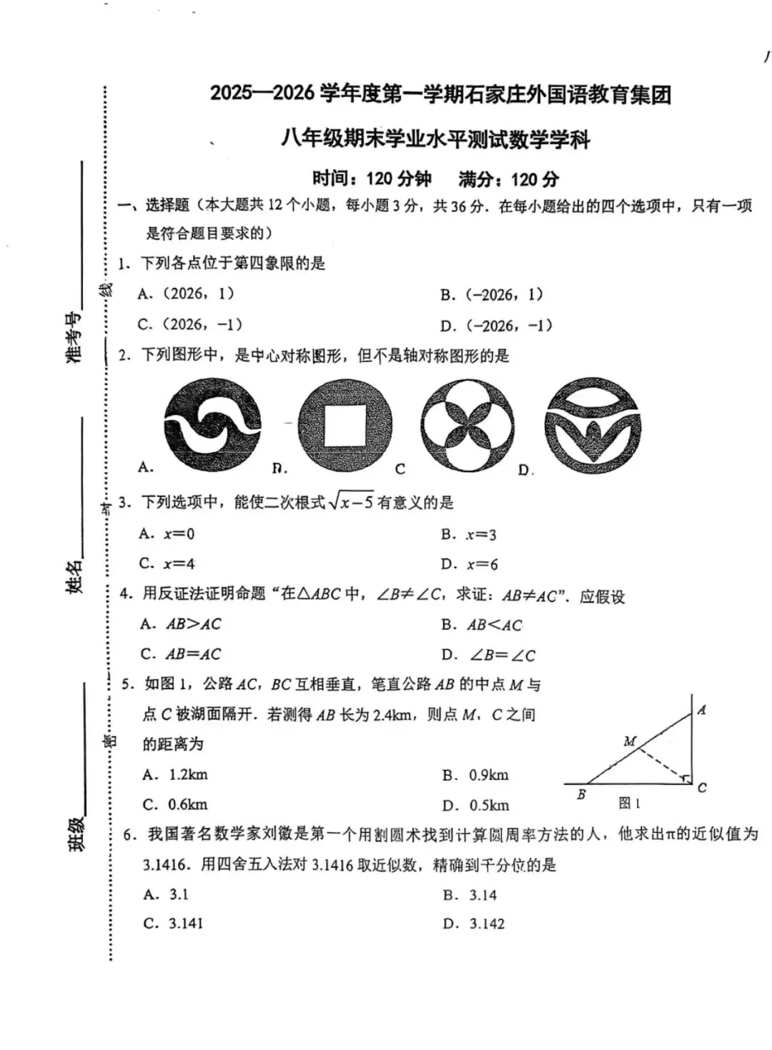 2026.1河北省九年级结课考试数学试卷