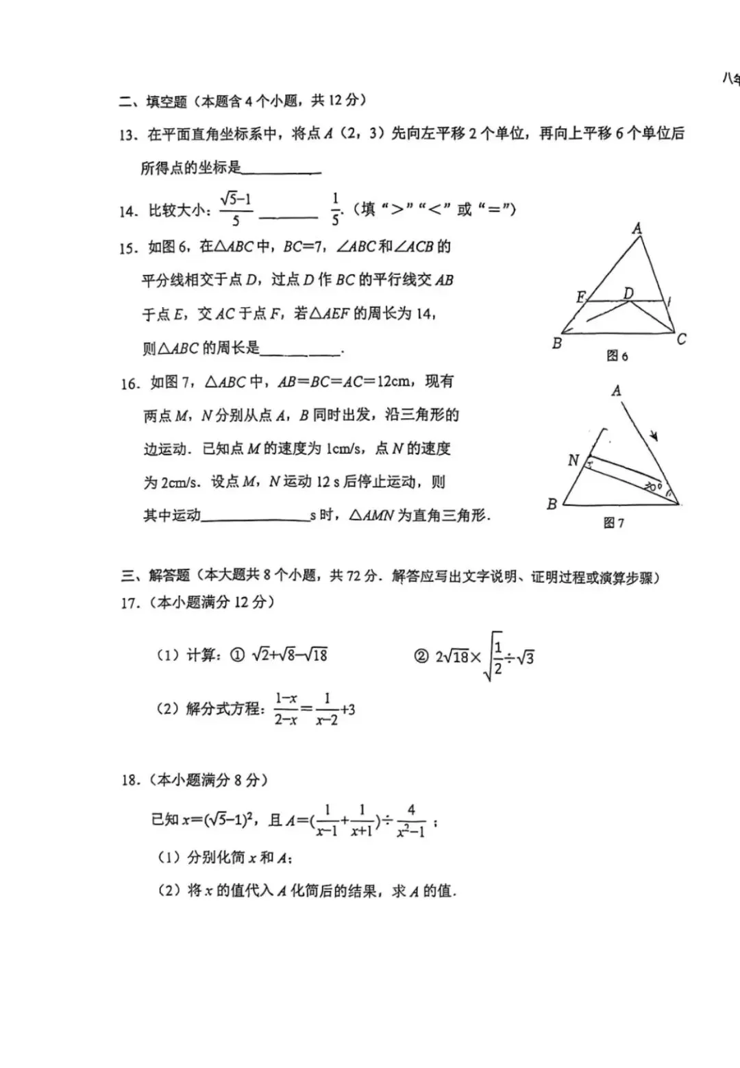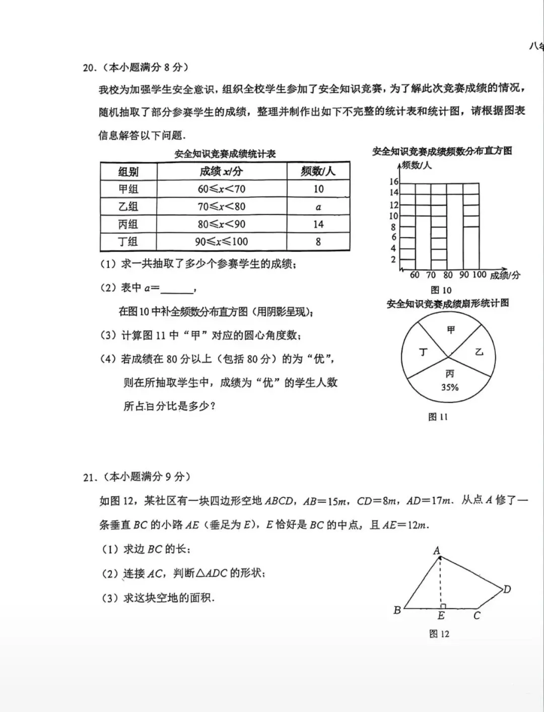 26.1河北省期末考试八年级数学试卷含答案(冀教版)