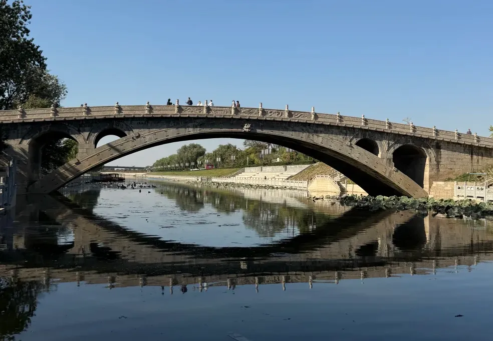 桥也叫安济桥,隋朝李春修的,单孔大石拱,肩上开敞口,水大就走肩,小脑袋一下就明白古人的脑筋有多好使。
