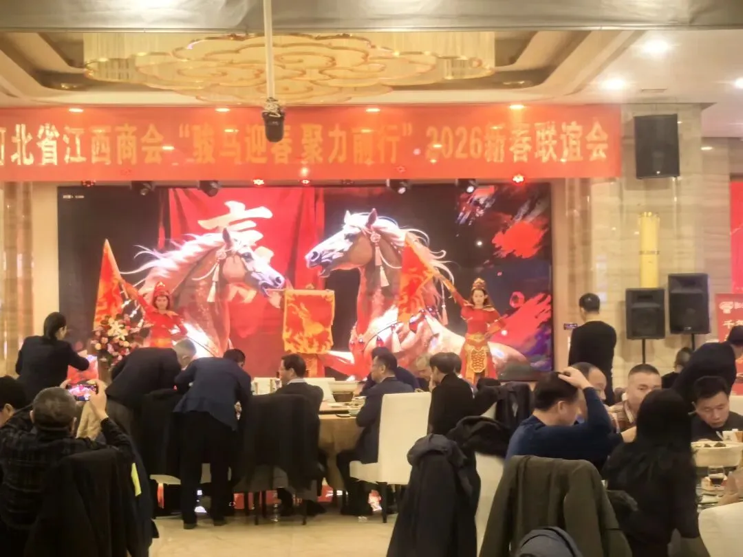 金蛇辞旧开锦绣,玉马迎新启华章。会后,河北省江西商会在石家庄市江西大厦二楼大厅隆重举行“骏马迎春 聚力前行”2026新春联谊会。联谊会上,专业文艺团队带来了舞蹈、歌曲、二胡、萨克斯、脱口秀等节目,形式多样,精彩纷呈,赢得阵阵掌声。