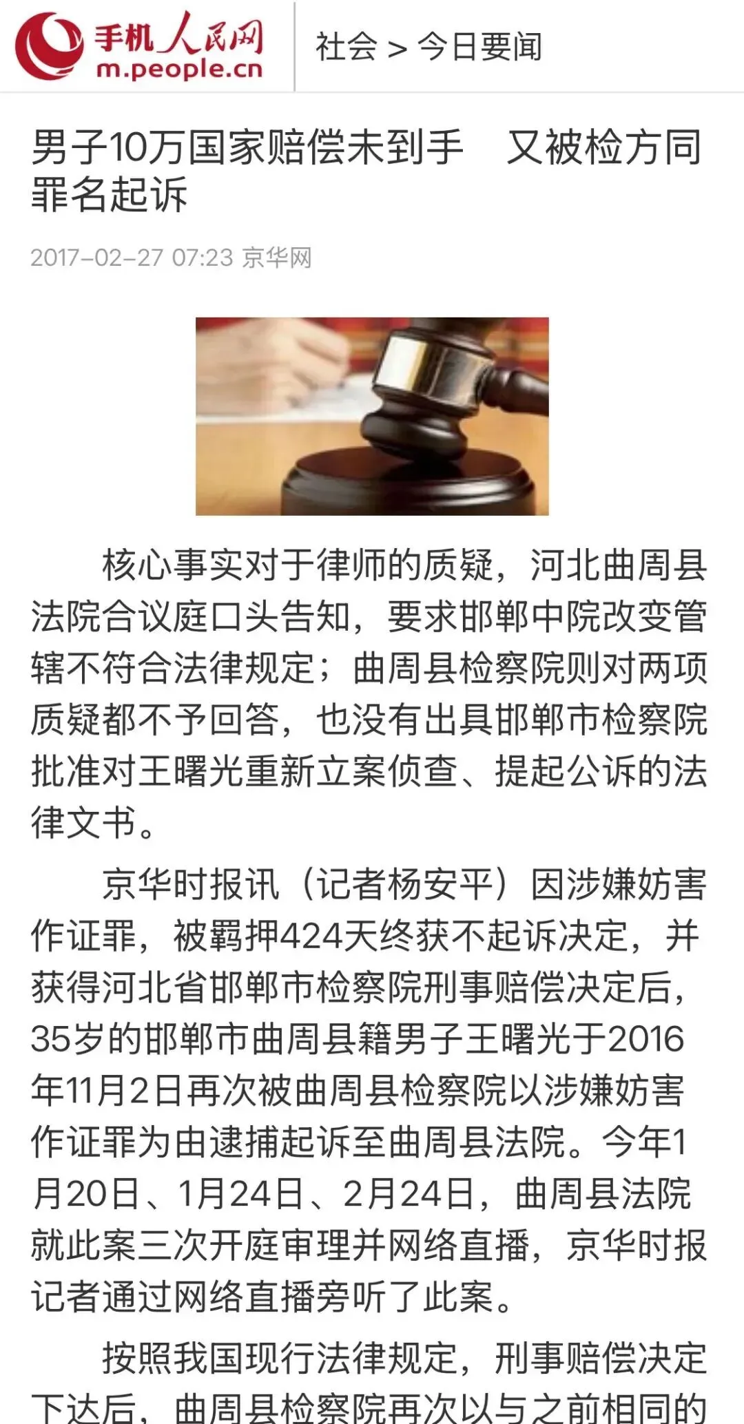 ▲人民网报道截图 2017.2.27