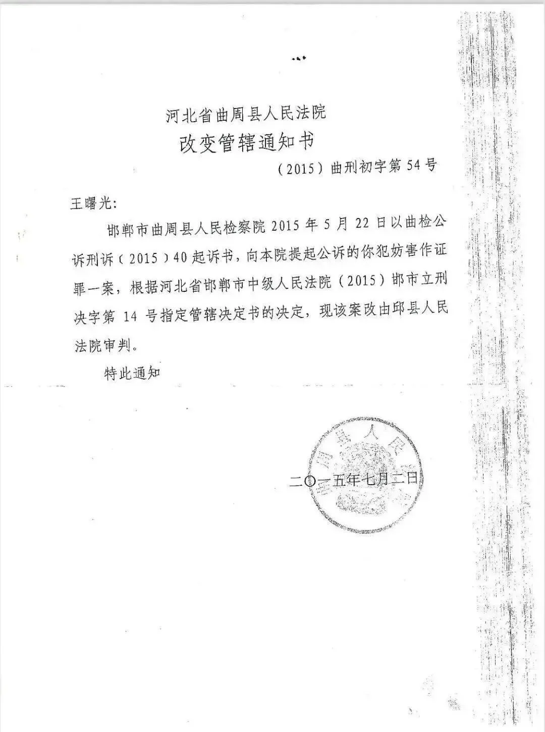 曲周县公、检、法“认定有罪”,将我诉至曲周法院。律师介入后,因本案不宜在曲周县法院审判,向邯郸市、河北省有关部门请求改变管辖。曲周法院刑庭袁章印副庭长认为律师提出的改变管辖申请具有正当事由,改变管辖符合本案实际情况和法律规定,故采纳律师改变管辖的意见,就律师提出改变管辖的申请依法报请邯郸中院作出改变管辖决定。