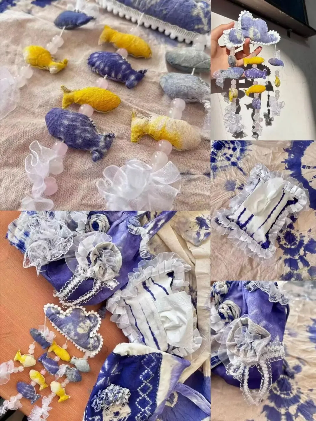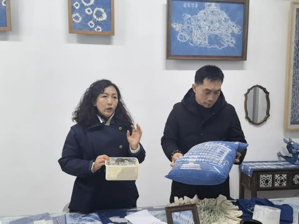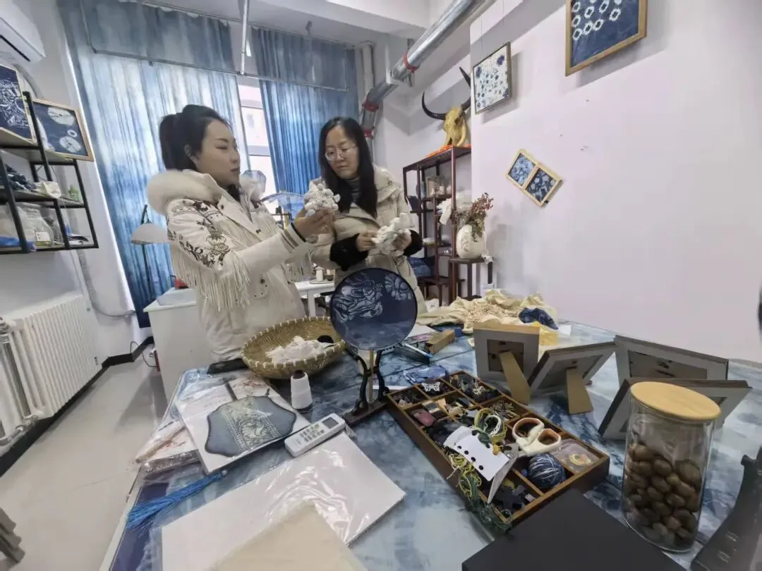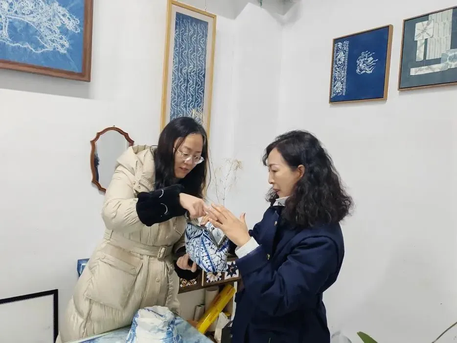 基地不仅保留了古法技艺,更注重创新融合。琳琅满目的扎染作品——从服饰、包袋到家居饰品,将传统纹样与现代审美相结合,展现出非遗活态传承的生命力,也为课题研发提供了丰富素材。