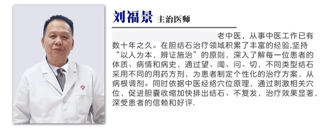 一边调理病根肝脏,一边融石排石,利用中医穴位疗法,通过对胆囊的穴位进行刺激,利用胆囊收缩的动力,在行胆经的时候,借助于胆汁把结石通过肠道肛门排出体外,这样标本兼治,治好以后才不容易复发。