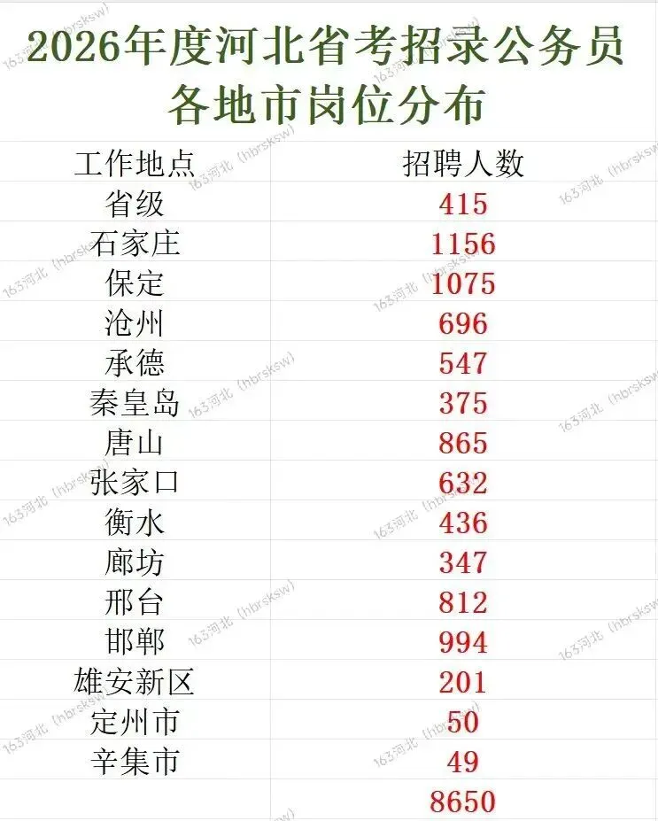 1.8650人!河北省2026年度公务员录用省市县乡四级联考公告