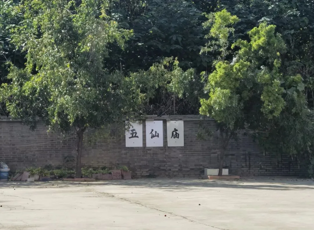 按照导航指引我到了庙的位置,大门在东南角,是个铁栅栏门,上着锁。透过铁栅栏门可以看到,里面是一大片空地,西墙上写着“五仙庙”三个大字,空地北面是一座庙。