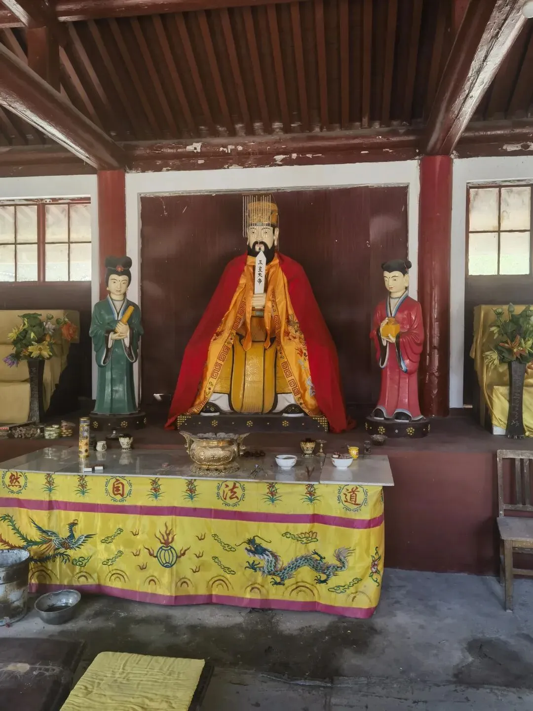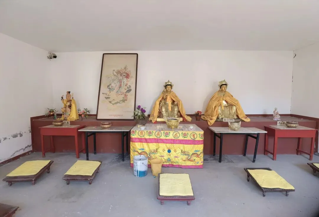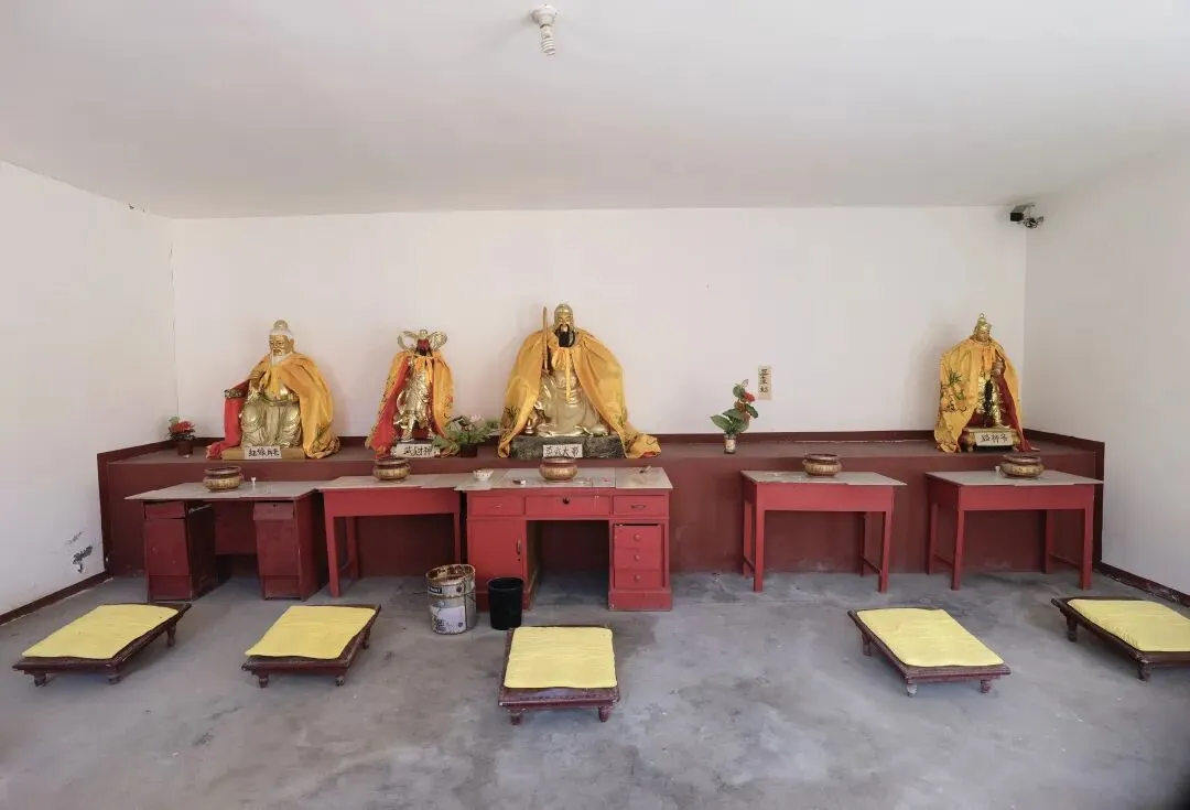 真武殿内供奉:中间是真武大帝,真武大帝右侧(西面)是武财神(红脸关公)、月老,左侧(东面)是三皇姑(还没有放塑像)、路神。