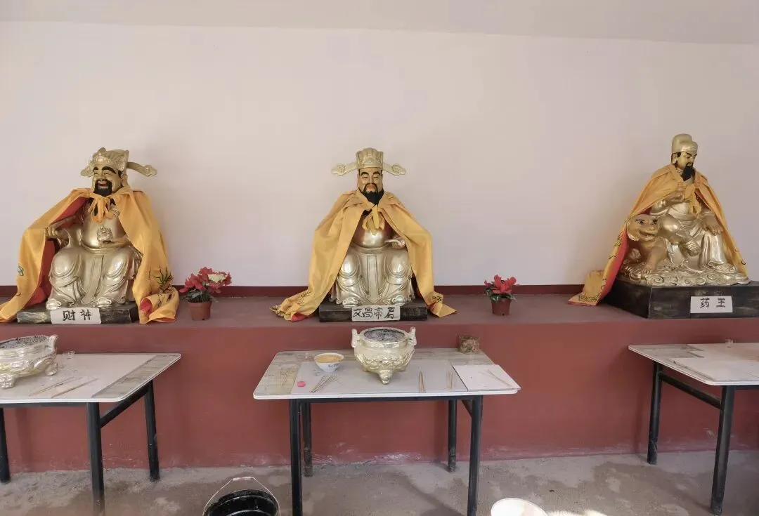 文昌殿供奉:中间是文昌帝君,北边是财神,南边是药王。