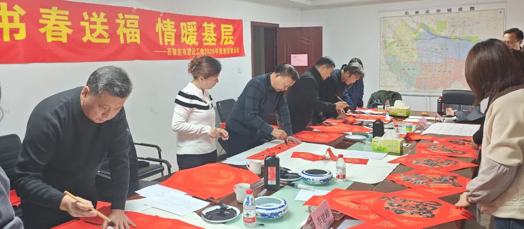 1月27日,省、市两级建设工会赴液化气第一分公司开展2026年“微宣讲 送温暖 写春联”进基层慰问活动,为200名一线职工送上慰问品、春联和新春美好祝福。市总工会党组成员、副主席聂建伦致辞并向参加活动的职工宣讲了市工会第二十次代表大会精神。书法家李建峰、孟增会等人挥毫泼墨,将市工会第二十次代表大会精神融入一副副撰写的对联之中,把新春的美好期许凝于笔墨。