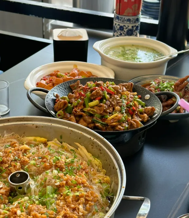 晚饭可以到**孔雀城附近的小馆子**。一碟焖子,一壶杏仁茶,再加点香椿拌豆腐,味道清淡,不腻。