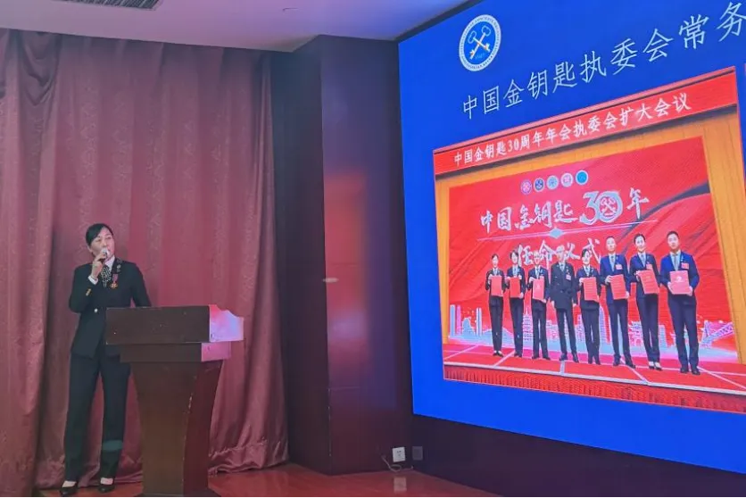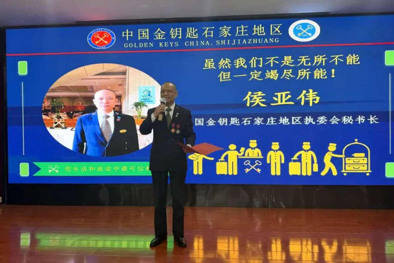 地区“精诚服务奖”:石益玲女士、王军女士、邢昆景女士、颜昭先生、徐晓南女士、曹江利女士,致敬他们在服务一线的坚守与深耕,以极致服务传递温暖;地区“品牌服务贡献奖”:安琳女士,表彰其为金钥匙品牌在石家庄地区推广与服务提升所做出的突出贡献。每一份荣誉,都是对付出的最好肯定;每一枚奖章,都是对初心的最好诠释。获奖同仁们身着正装、佩戴金徽,脸上洋溢着自豪的笑容,这份荣誉,不仅属于个人,更属于每一位坚守服务初心的金钥匙人。颁奖环节结束后,地区执委会秘书长侯亚伟先生代表执委会发表新年贺词。侯总向全体金钥匙同仁、各位嘉宾致以最诚挚的新春祝福,回顾过往、展望未来,鼓励大家在新的一年里,继续秉持金钥匙服务理念,凝心聚力、携手并肩,以更专业的服务、更饱满的热情,书写石家庄地区金钥匙服务的新篇章。