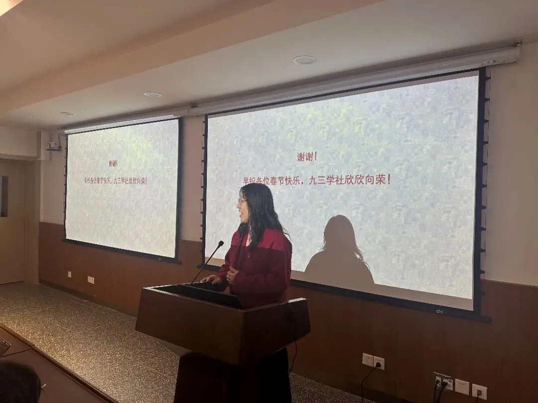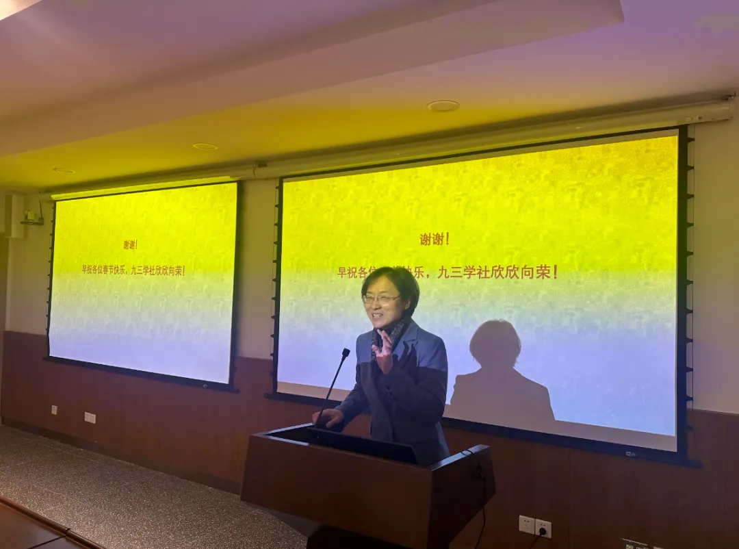 九三学社邯郸分委会副主委戴维林通报了2025年度组织工作情况。新社员们上台与大家见面,并分享了加入九三学社以来的体会与心得,表达了积极参与社务工作的决心。