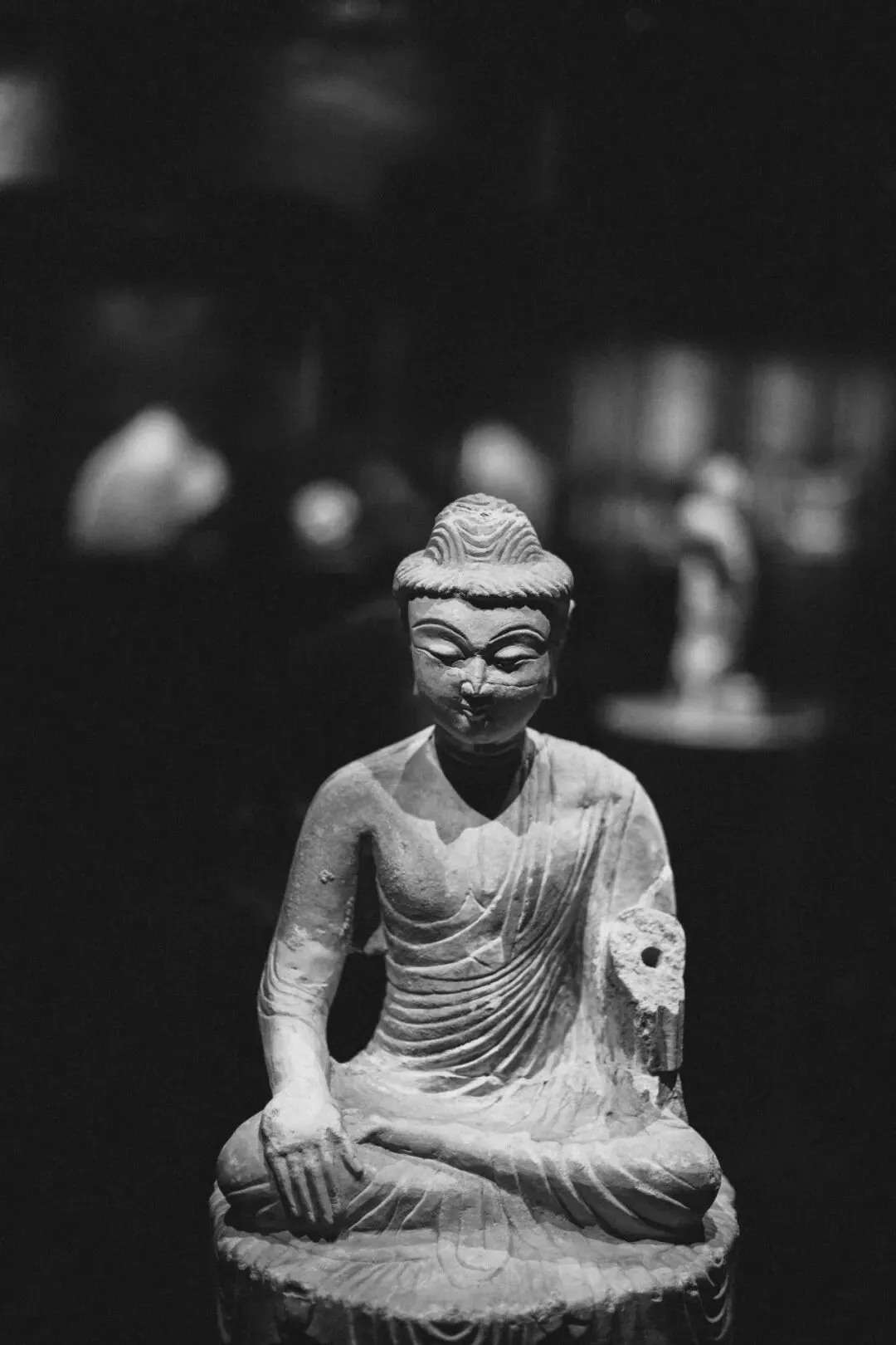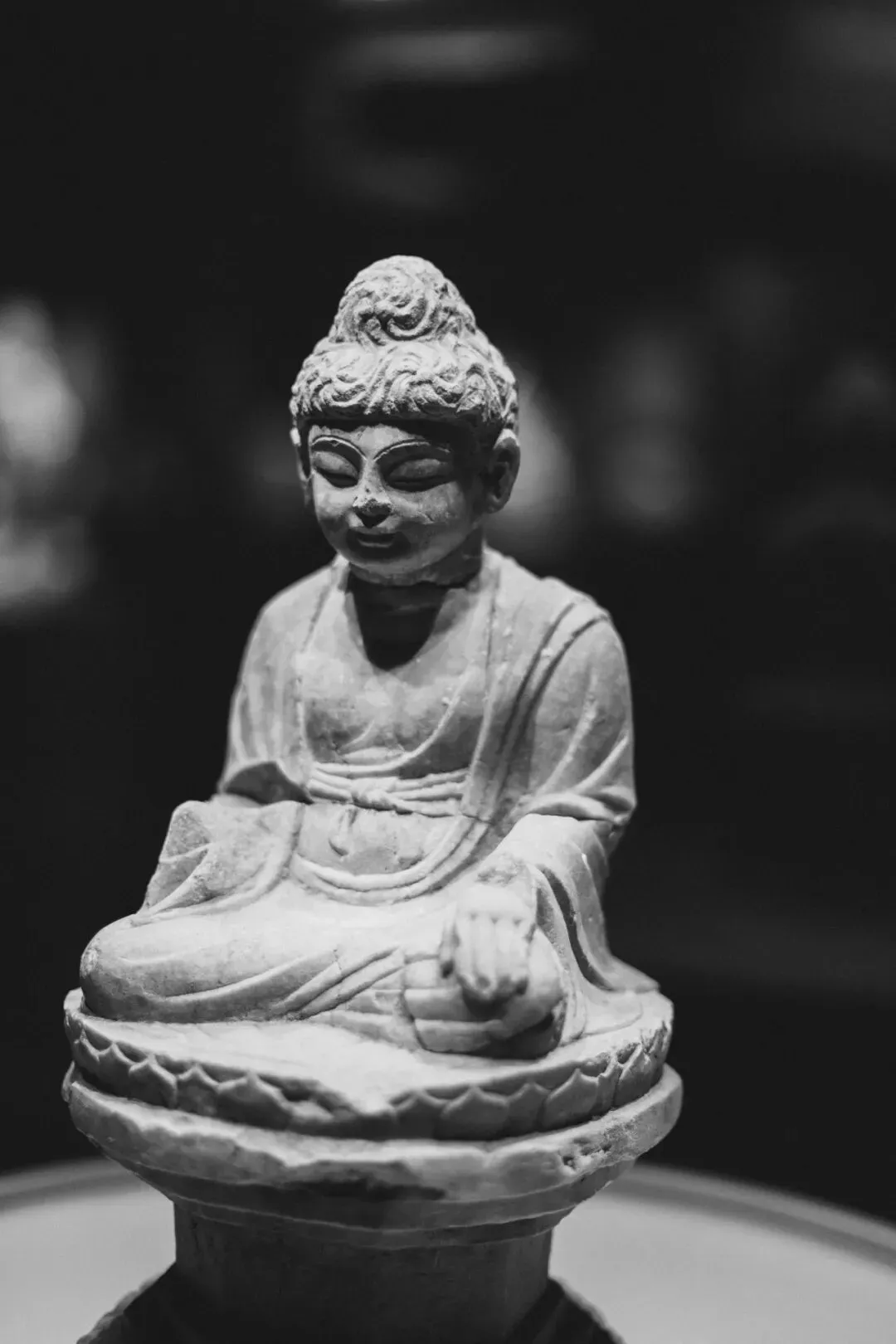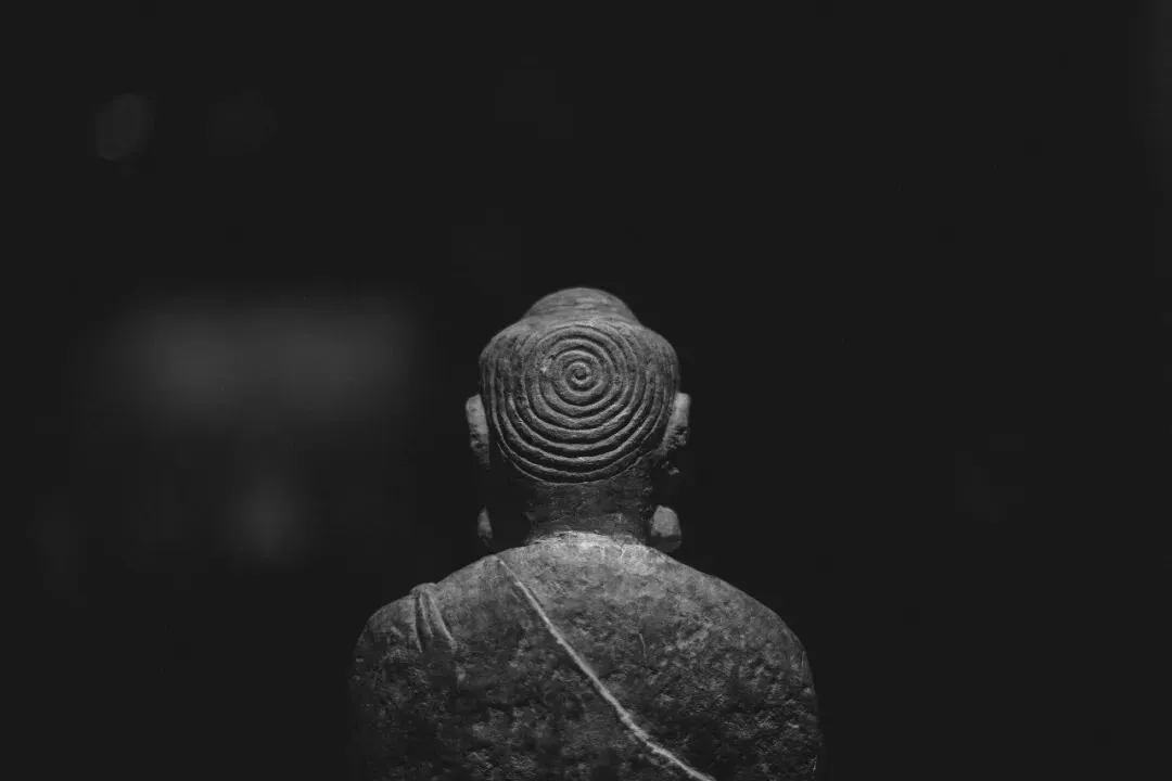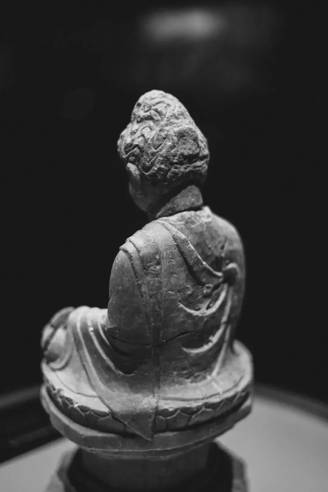 这种同心圆式的发髻就是佛教造像里“螺髻”的一种典型表现手法。佛陀的头发被视为“青绀色,右旋盘绕”,工匠们用这种简洁又富有韵律的同心圆,来象征佛陀头发如海螺般右旋生长的神圣特征。