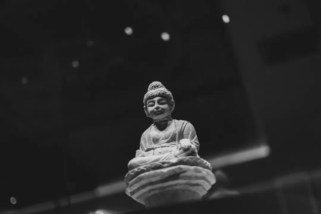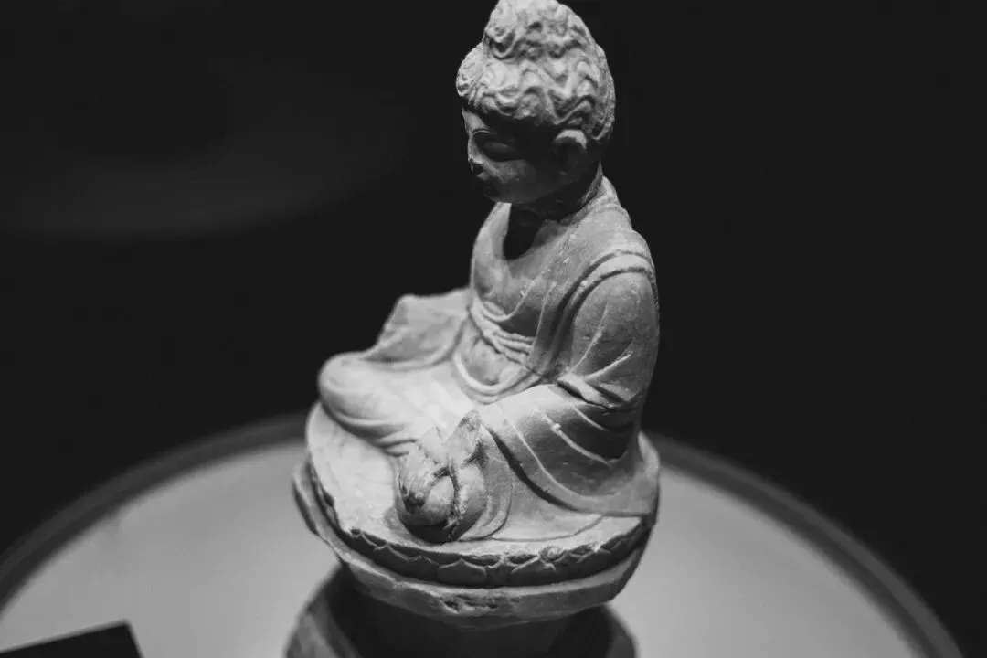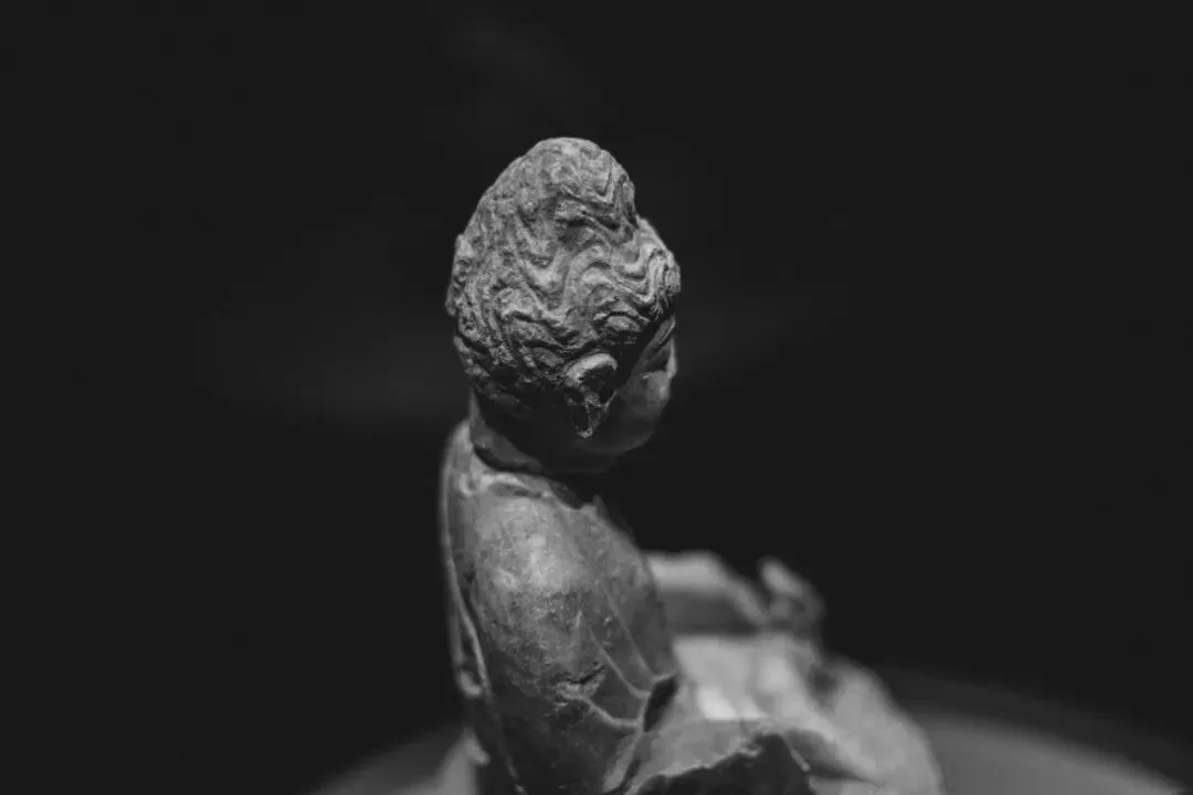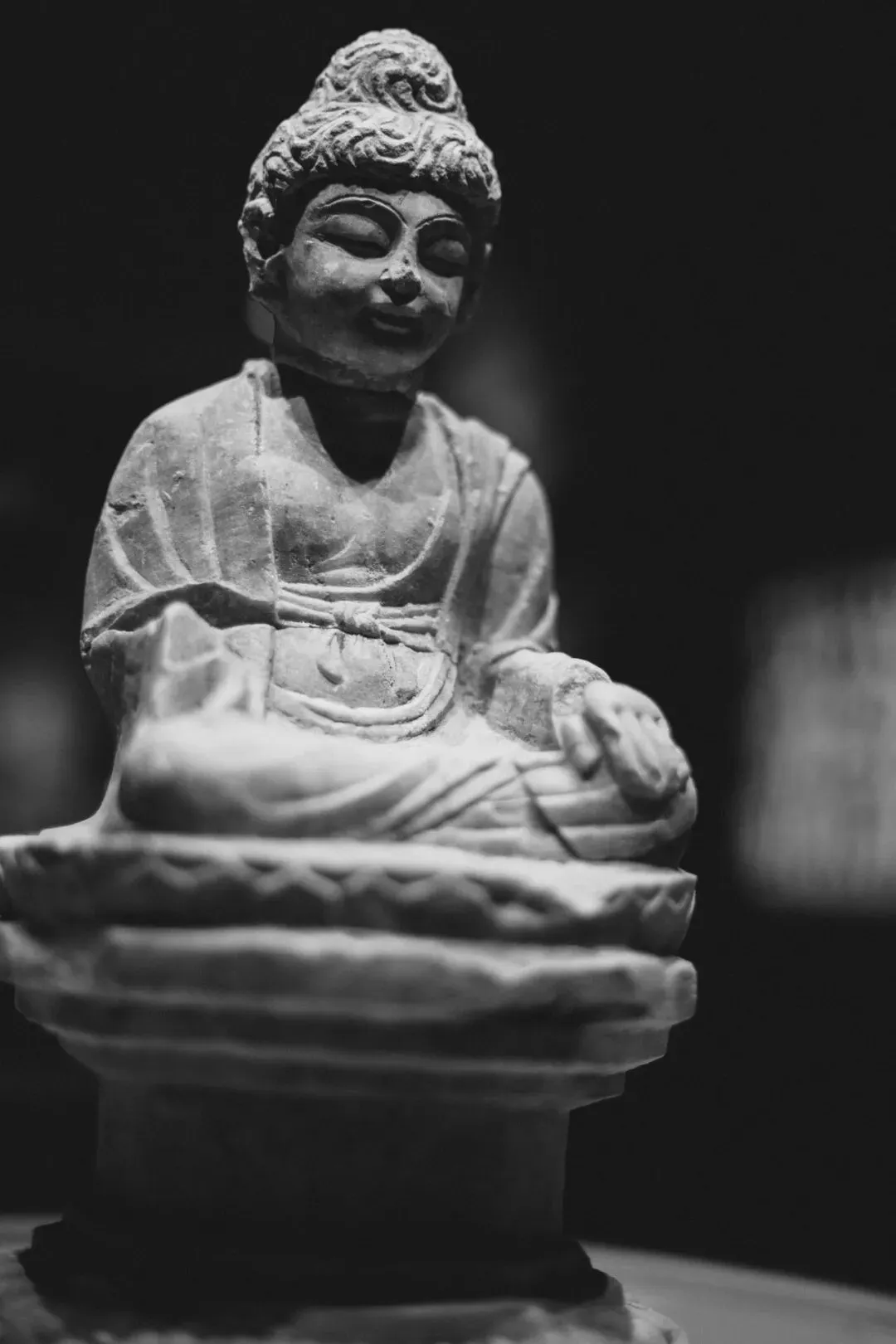 这种同心圆式的发髻就是佛教造像里“螺髻”的一种典型表现手法。佛陀的头发被视为“青绀色,右旋盘绕”,工匠们用这种简洁又富有韵律的同心圆,来象征佛陀头发如海螺般右旋生长的神圣特征。