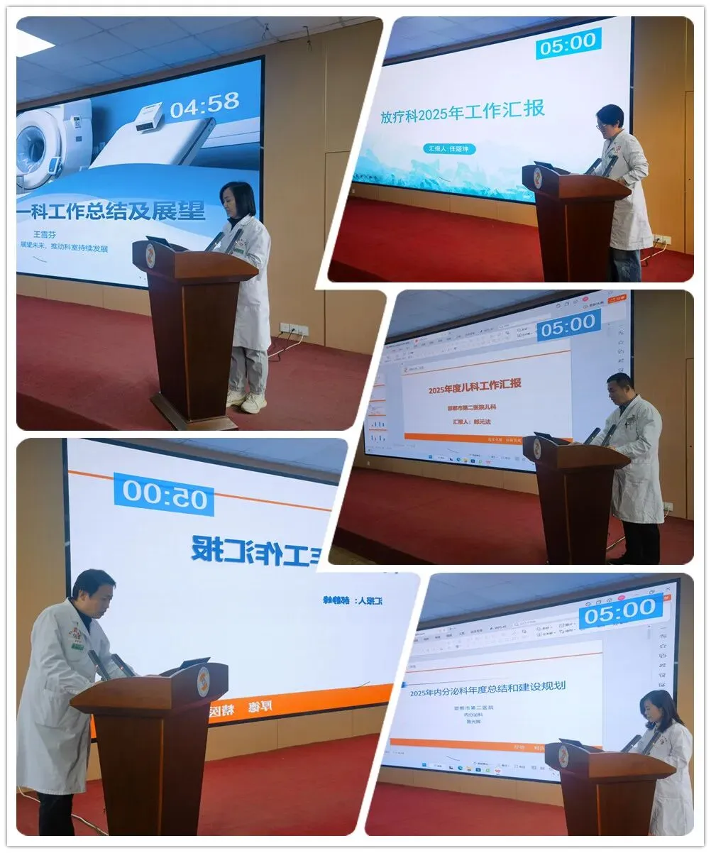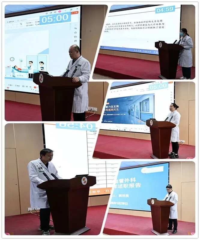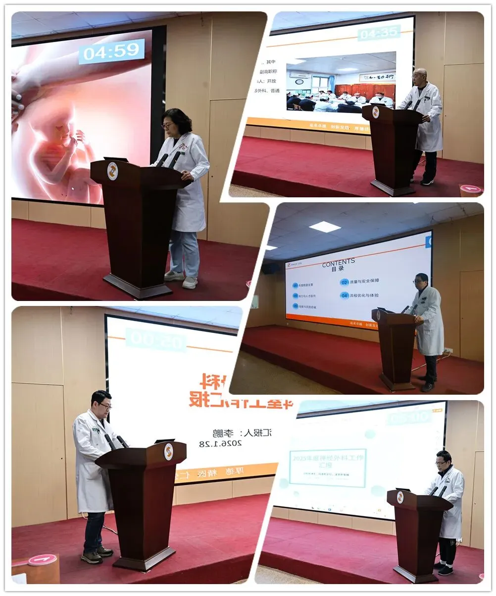 临床25个科室主任依次进行述职汇报。各科室立足实际,围绕年度工作目标完成情况、医疗质量与管理、人才培养、服务能力、学科建设、科室精细化管理六个维度,全面梳理2025年度工作亮点与实效,坦诚剖析现存问题与不足。谋划2026年工作,各科室紧扣医院整体发展战略,在技术创新、能力提升、流程优化、人才梯队建设等方面提出了切实可行的工作目标和实施路径,展现了积极进取、奋发有为的精神风貌。