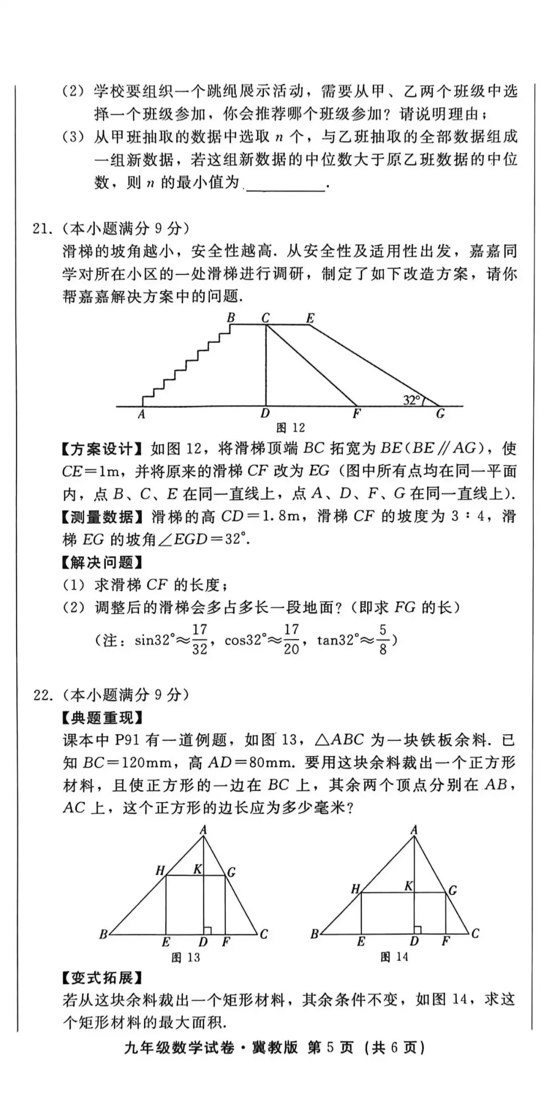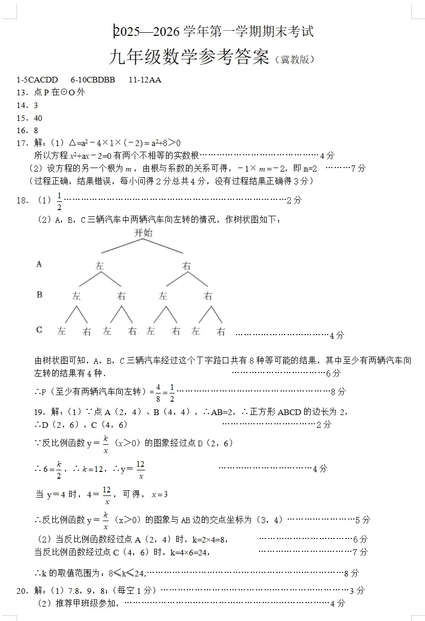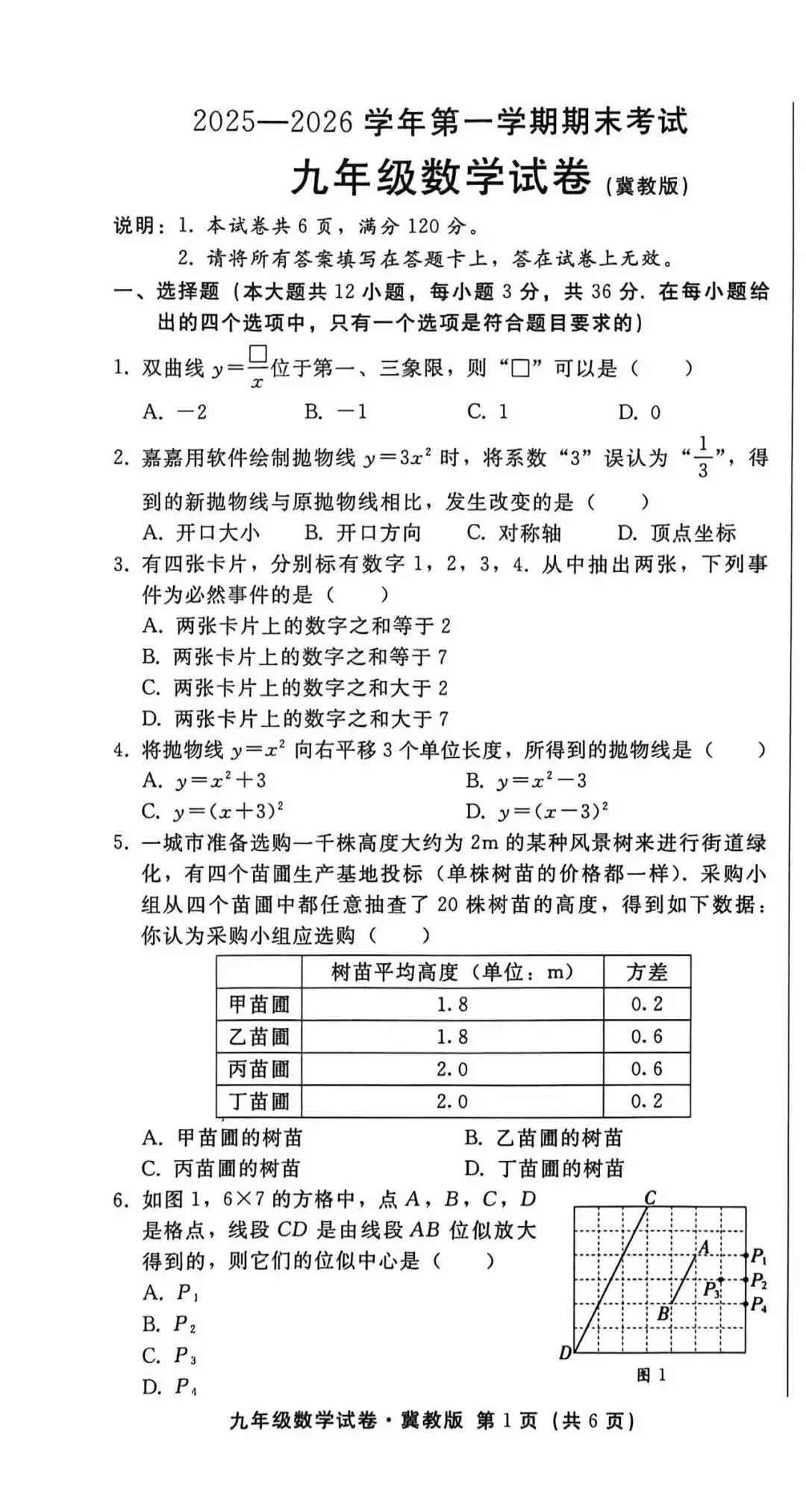 >邢台市2025—2026学年第一学期九年级期末冀教版数学试卷