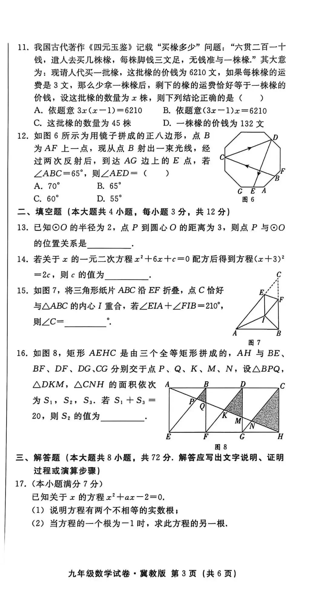 2026.1邯郸育华中学九年级上学期期末试卷(可打印)
