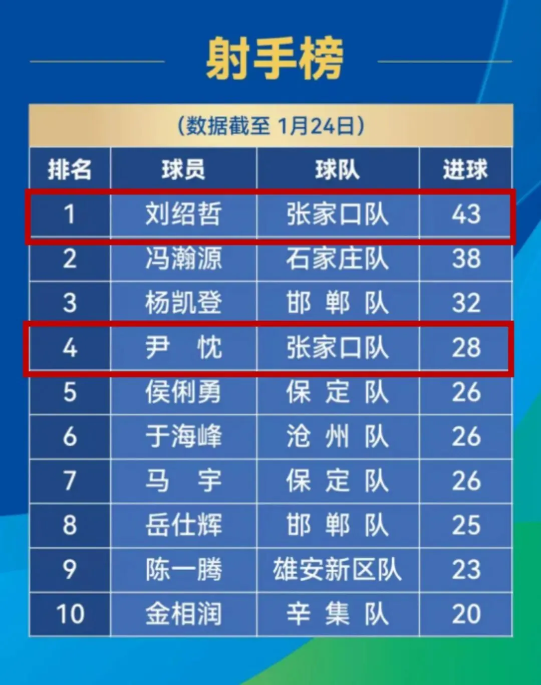 以43粒进球稳坐射手榜榜首
