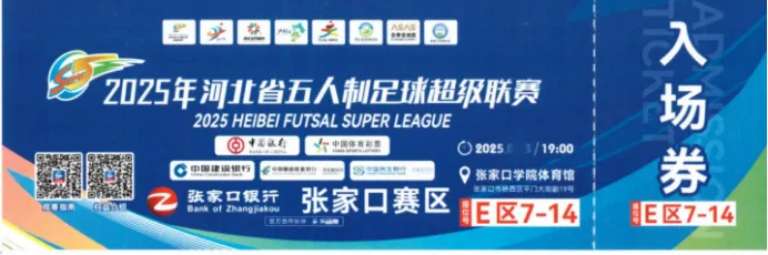 张家口主场对阵秦皇岛的球票一张