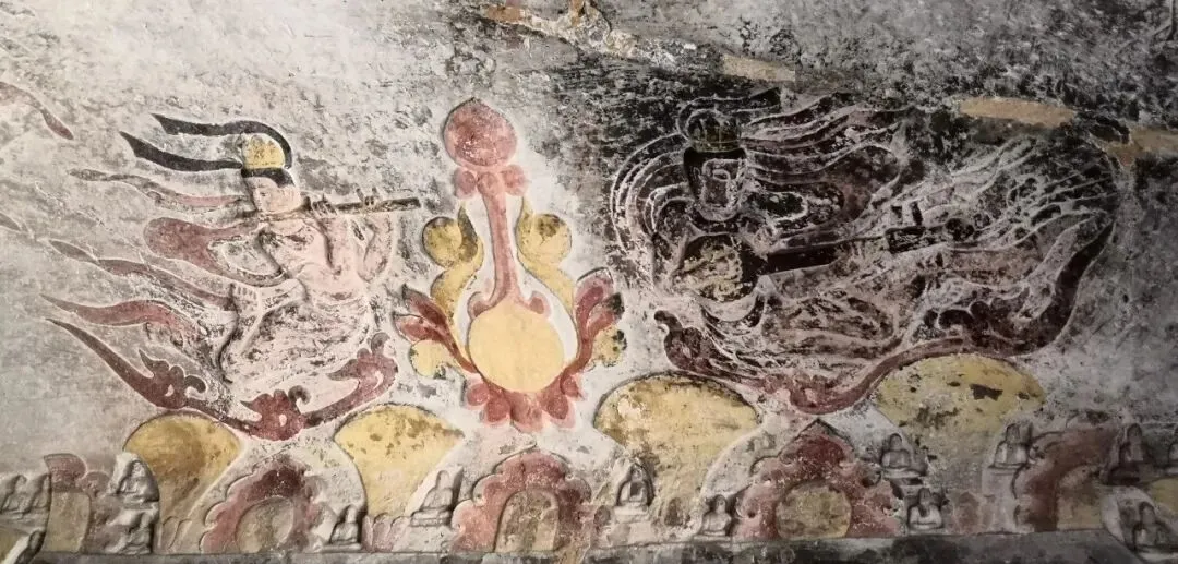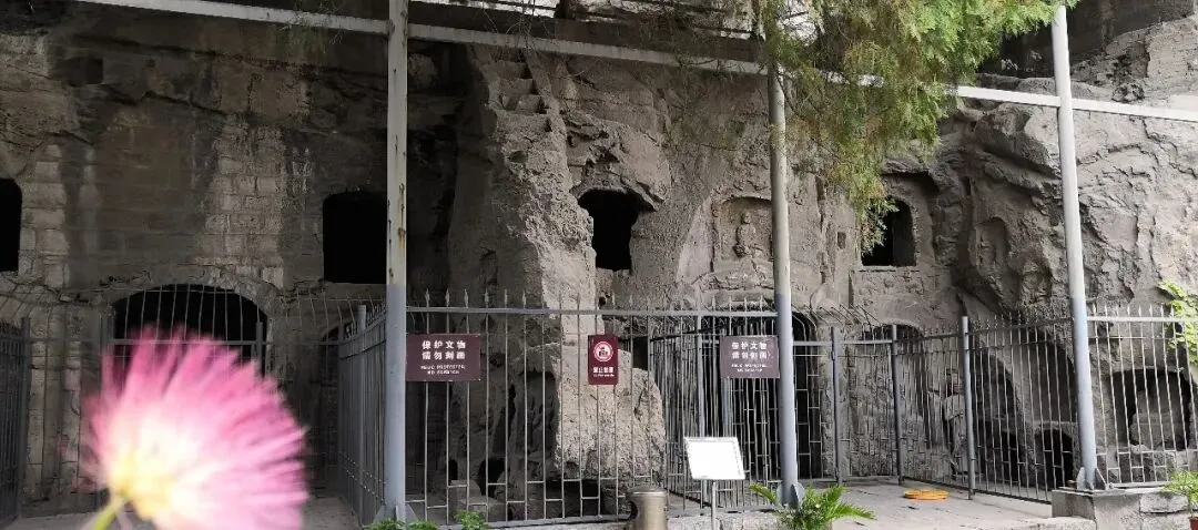 现在石窟门口已全部装上铁栅保护起来,我们当天正赶上一群领导来参观,景区工作人员把石窟铁栅逐个打开,于是,我们也一同进到里面,有幸近距离仔细观看了这些历经千年色彩依然艳丽的珍贵文物,同时也近距离看到了文物的破损程度。