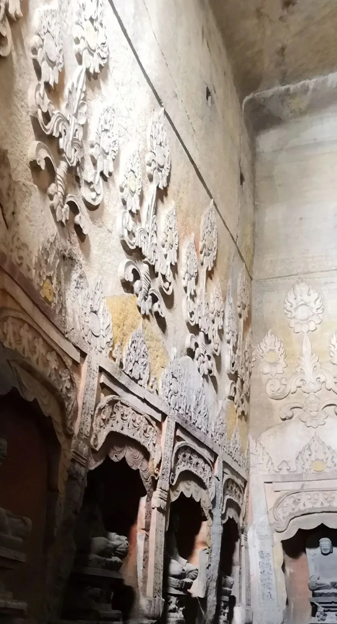 许久的欣赏、凝视,带来的是清爽----沁人心脾,宁静----净化心灵。来自石窟上端明窗的自然光影,强化了石雕众神灵的神秘和崇高,蹲下、倚着石壁、靠近石雕,与众神靠的更近,也能将响堂山石窟的艺术精华和佛界圣境拍摄的更清晰、更震撼,不时有飞鸟在洞内鸣叫、盘旋,使宗教场所既庄严肃穆又那样接近苍生万物,南无阿弥陀佛!善哉!