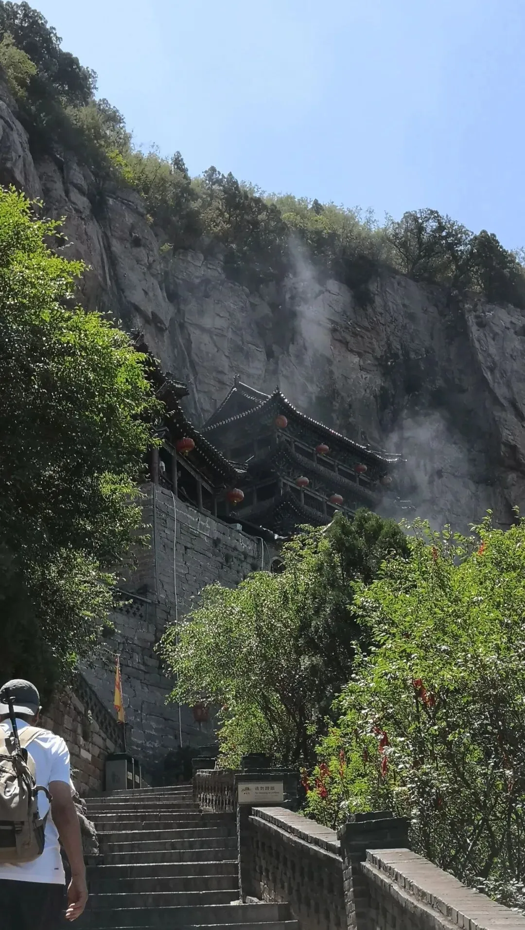第二天一早,经雨水的冲刷天空湛蓝,又是一个暴晒的大晴天啊。吃过早饭,一路向西,来到了涉县的娲皇宫。