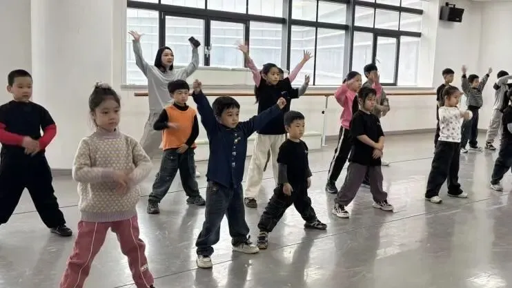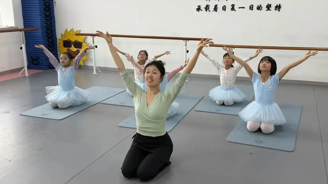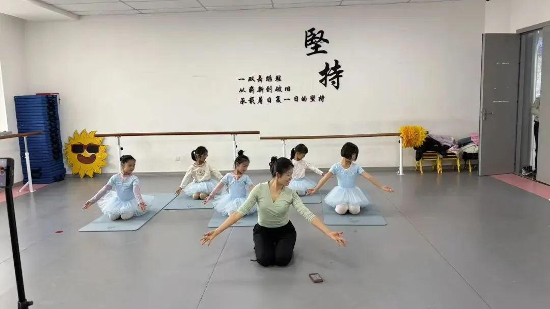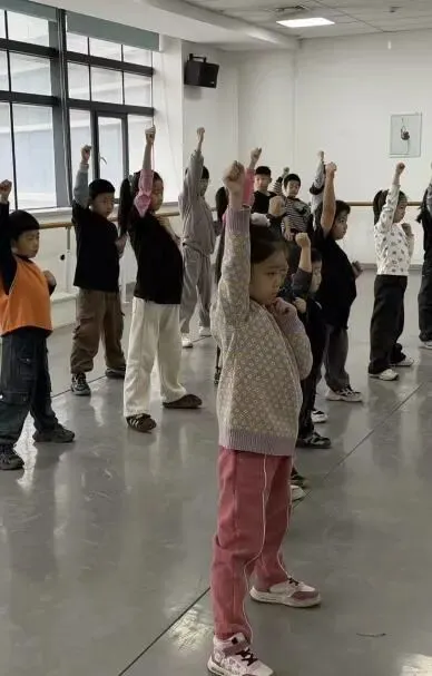 小学员们在专业老师的带领下练习基本功,舞姿优美,笑容灿烂。新老学员相互配合,课堂氛围温馨有序。