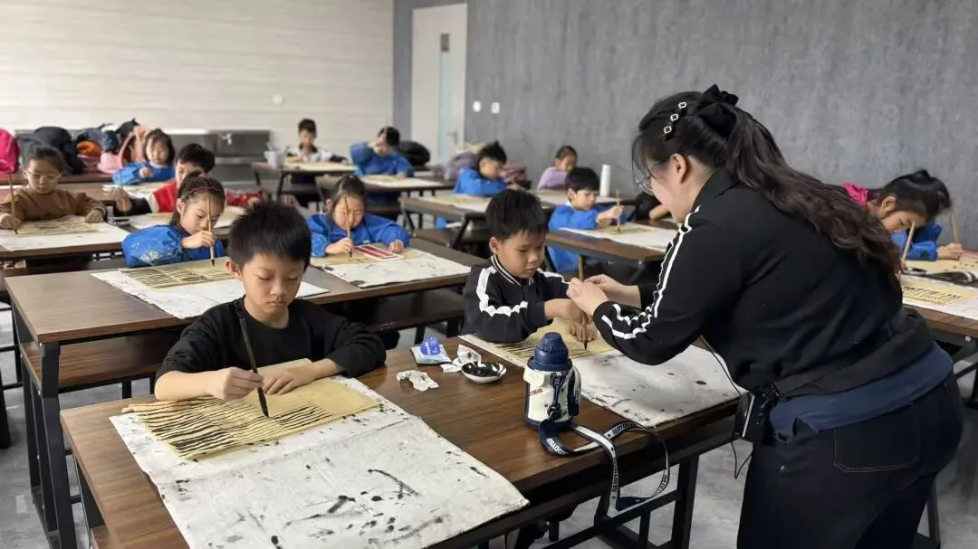 在充满墨香的书法教室,孩子们认真临摹字帖,掌握握笔姿势,在墨香中感受传统文化的魅力