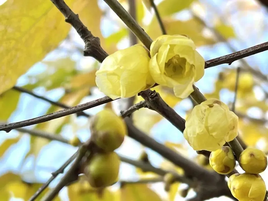 循着沁人心脾的香气望去,一树树蜡梅悄然绽放,金黄的花瓣层层叠叠,在寒风中舒展身姿,花骨朵儿饱满圆润,仿佛蕴藏着无限生机。