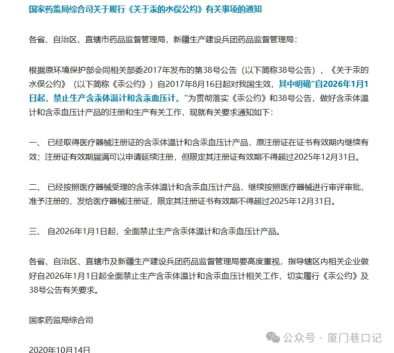 根据此前国家药监局发布的通知,自2026年1月1日起,我国将全面禁止生产含汞体温计和含汞血压计产品,这一政策标志着水银体温计即将正式退出历史舞台。