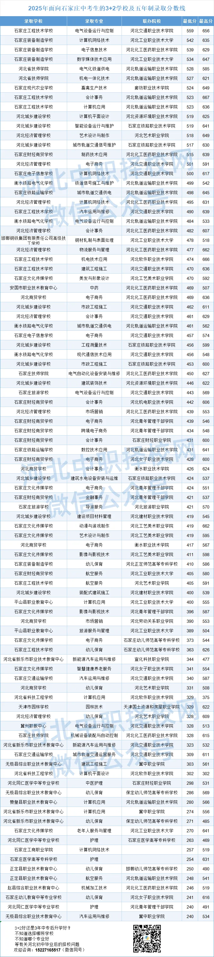 如果你是石家庄2026届中考生或家长,正在为孩子考不上重点高中而寻找一条稳妥、有保障、学制短的升学路径,可以考虑3+2和五年一贯制,今天为大家整理了2025年面向石家庄地区考生3+2及五年制各学校各专业的录取分数线,供大家参考。