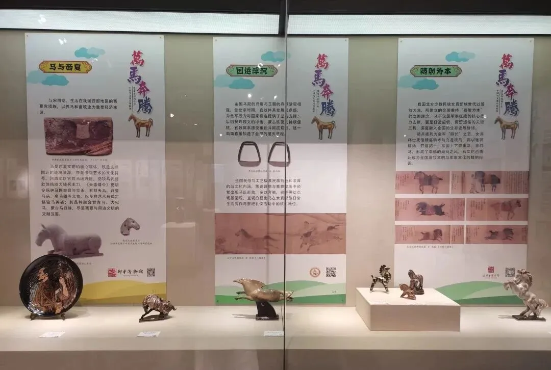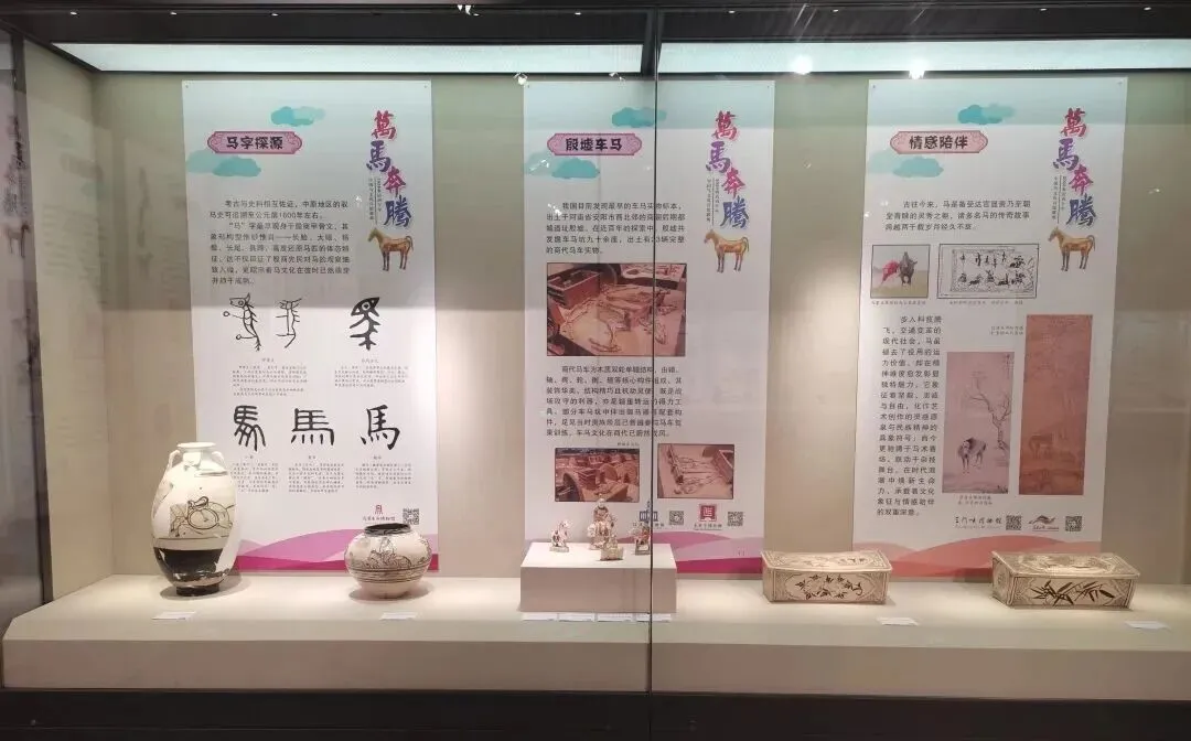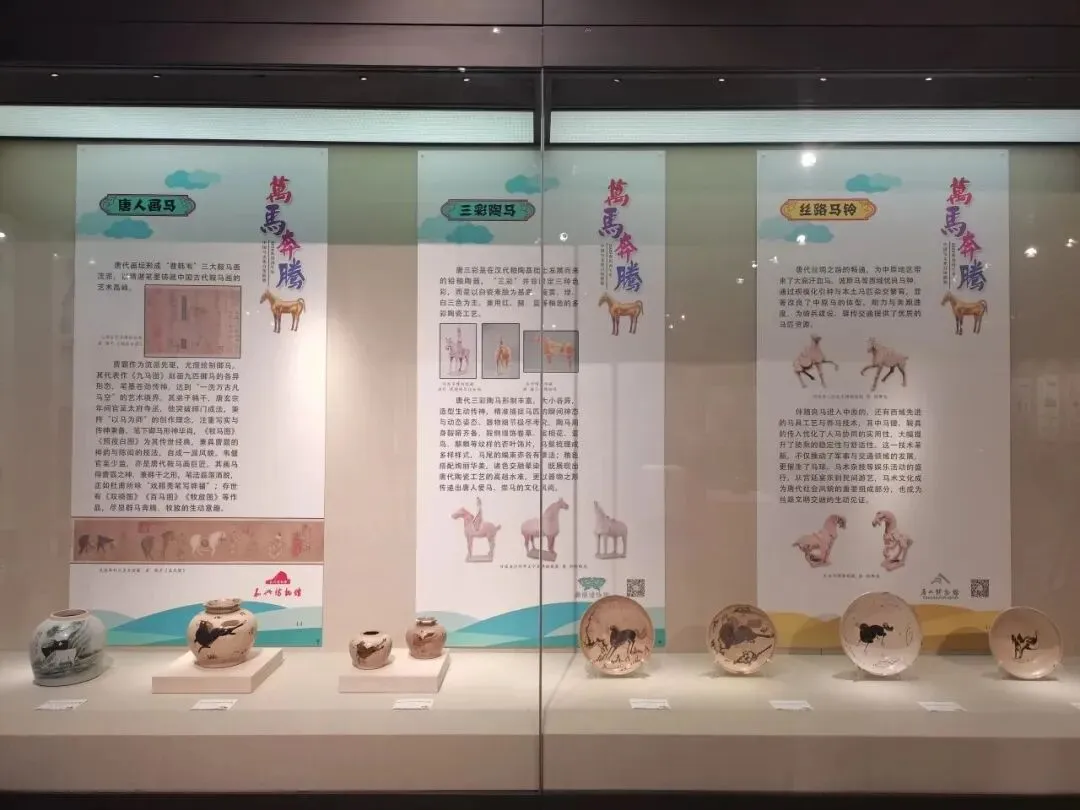 展览以"万马奔腾"为魂,甄选全国一百多家文博机构所藏历代马主题文物艺术珍品图片200余帧,以图文形式,全面解读马与华夏民族的内在联系,回溯中国马文化的历史脉络,使全国观众对马有一个全面、系统的了解。同时配合展出邯郸市博物馆及磁州窑学会所藏马文物和艺术品近百件。在这里,你可以领略汉画马阵的雄浑气魄,触摸历史文物的博大深沉,品读书画中"一骑绝尘"的笔墨张力,感受工艺里"神驹跃动"的巧夺天工。每一件文物都是文明的刻度,每一道纹路都藏着奋进的密码,它们共同勾勒出中华民族自强不息、一往无前的精神图谱。