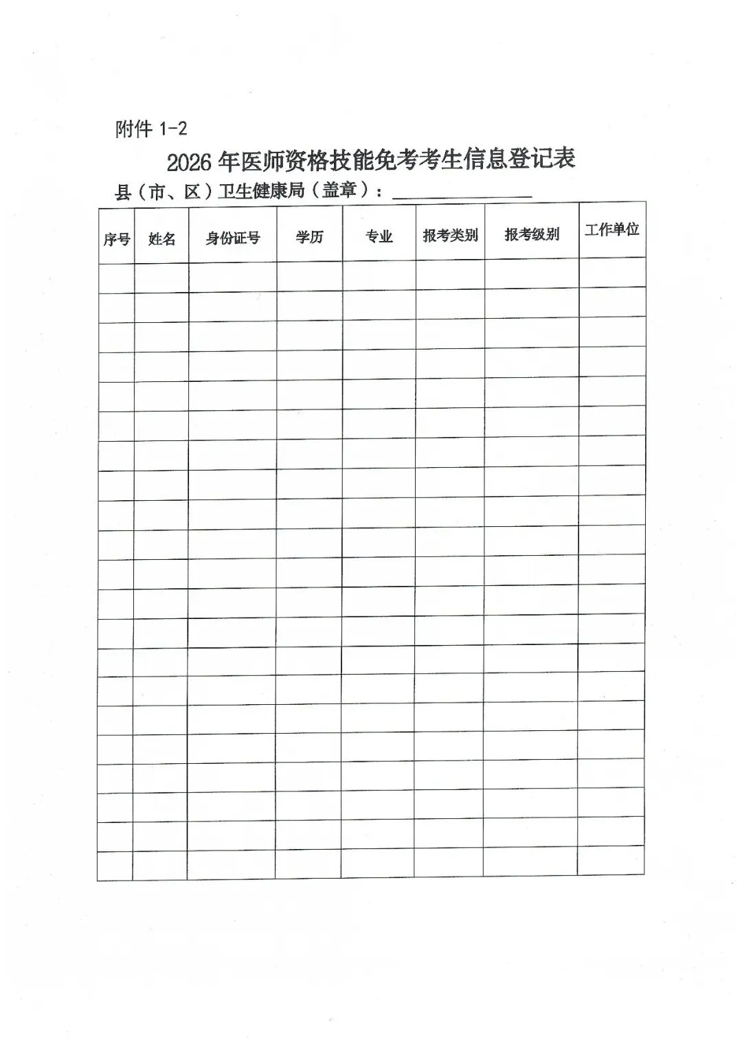1.2 2026年医师资格技能免考考生信息登记表