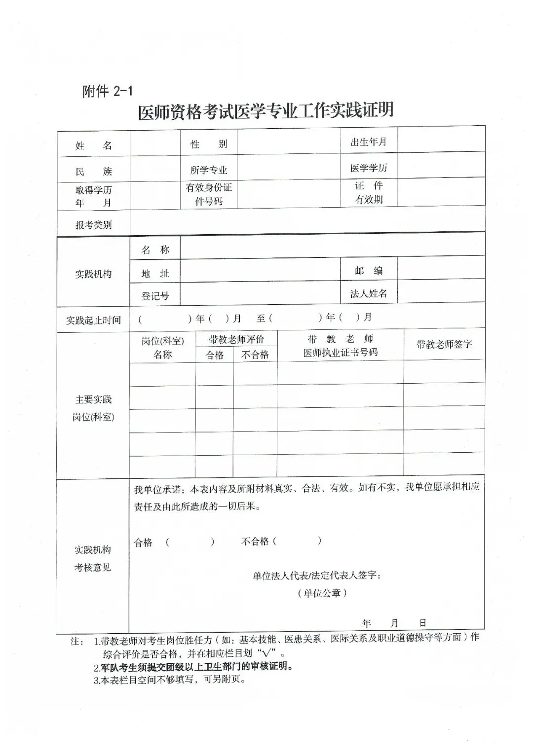 2.1《医师资格考试医学专业工作实践证明》