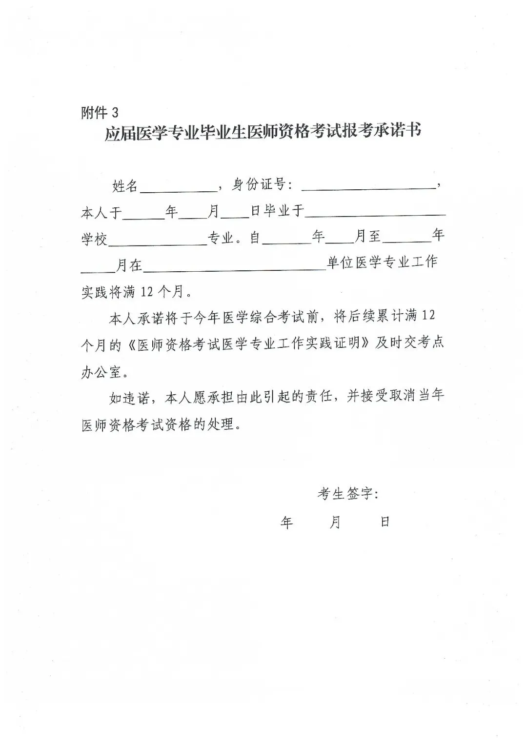 3.应届医学专业毕业生医师资格考试报考承诺书