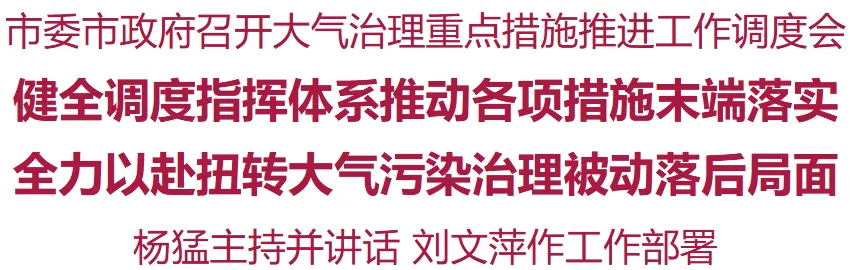 1月30日,市委书记杨猛主持召开大气治理重点措施推进工作调度会,市委副书记、市长刘文萍作工作部署,市领导冯亚强、郑传记、冯祥利、李亚林、于海峰出席并讲了意见。
