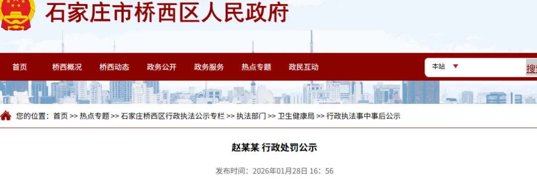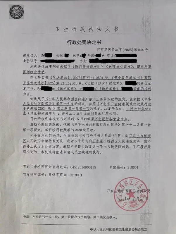 你违反了《中华人民共和国医师法》第十三条第四款的规定。现依据《中华人民共和国医师法》第五十九条的规定,参照《河北省卫生健康领域行政处罚裁量权基准(2024版)》第二章第十条第一项的规定,决定予以你: