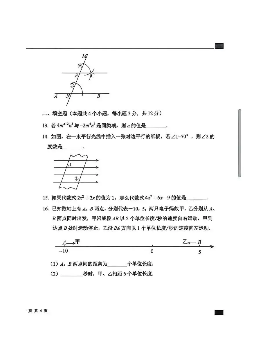 【初一数学】2026年1月30日石家庄市43中七上期末考试数学卷