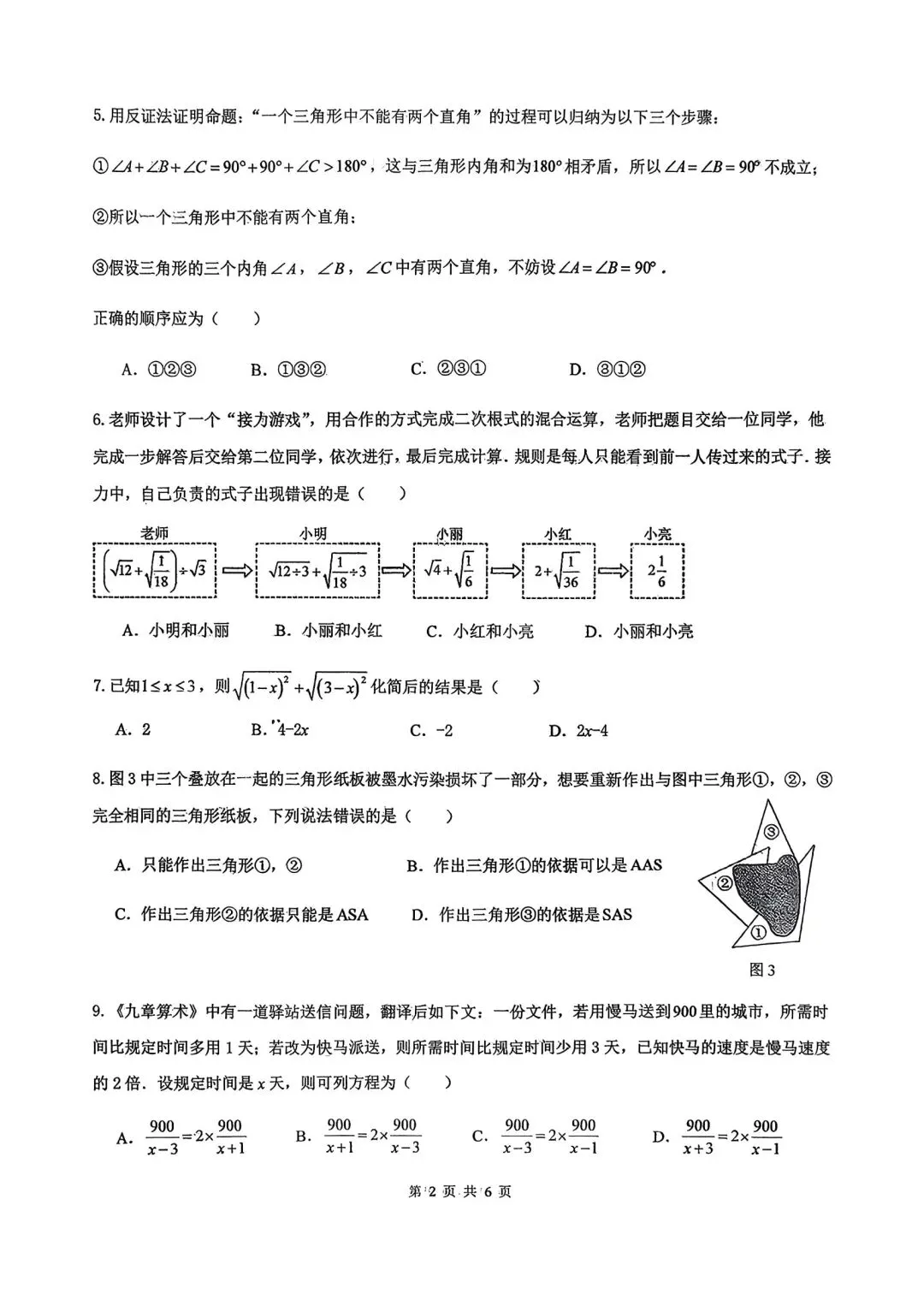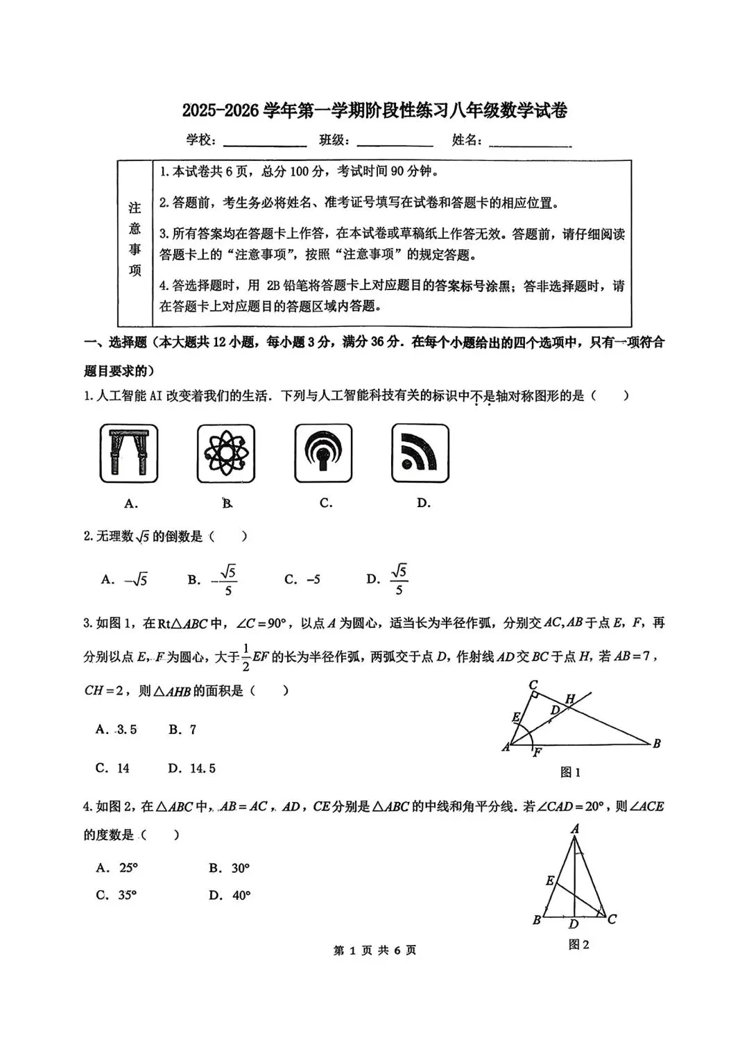 >2025-2026石家庄二十三中八年级第一学期期末数学试卷