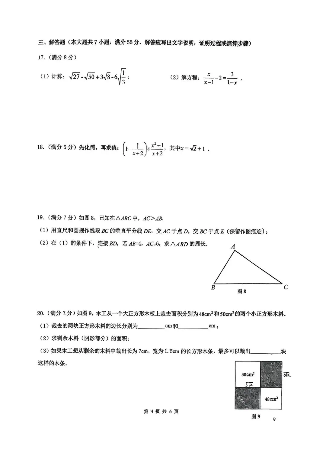 2025-2026石家庄二十三中八年级第一学期期末数学试卷