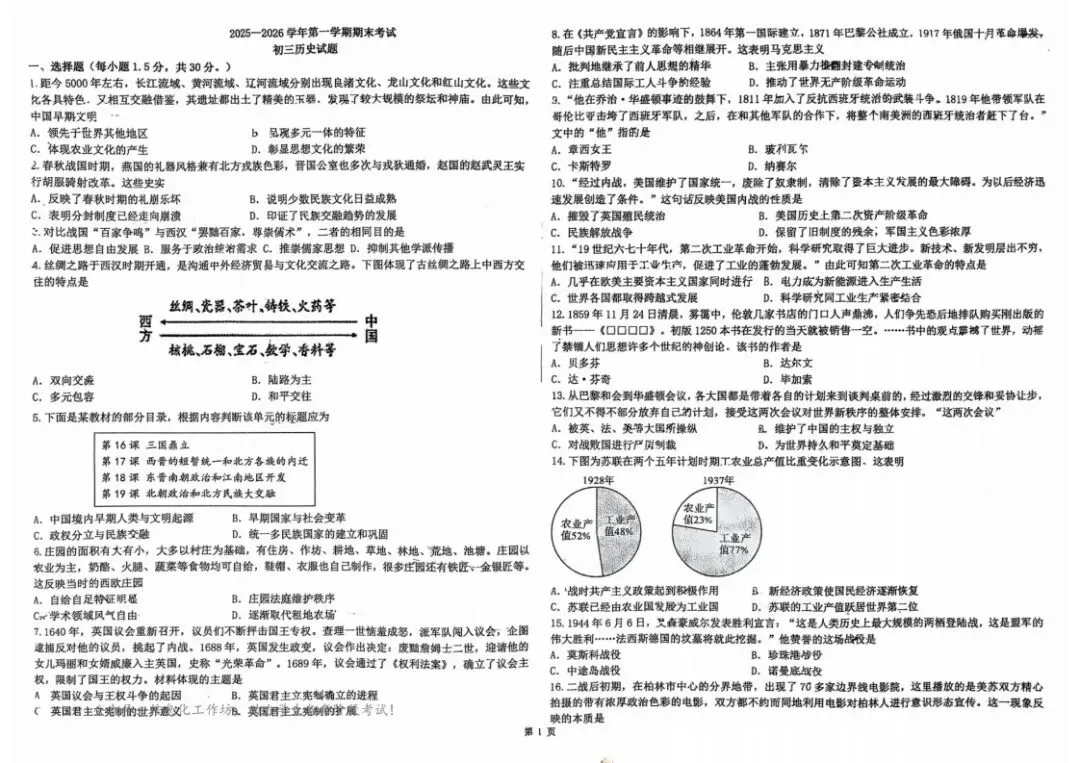 (一)夸克网盘分享了「【0131】2026年1月石家庄40中九年级期末历史试卷」,链接:https://pan.quark.cn/s/23144089b663