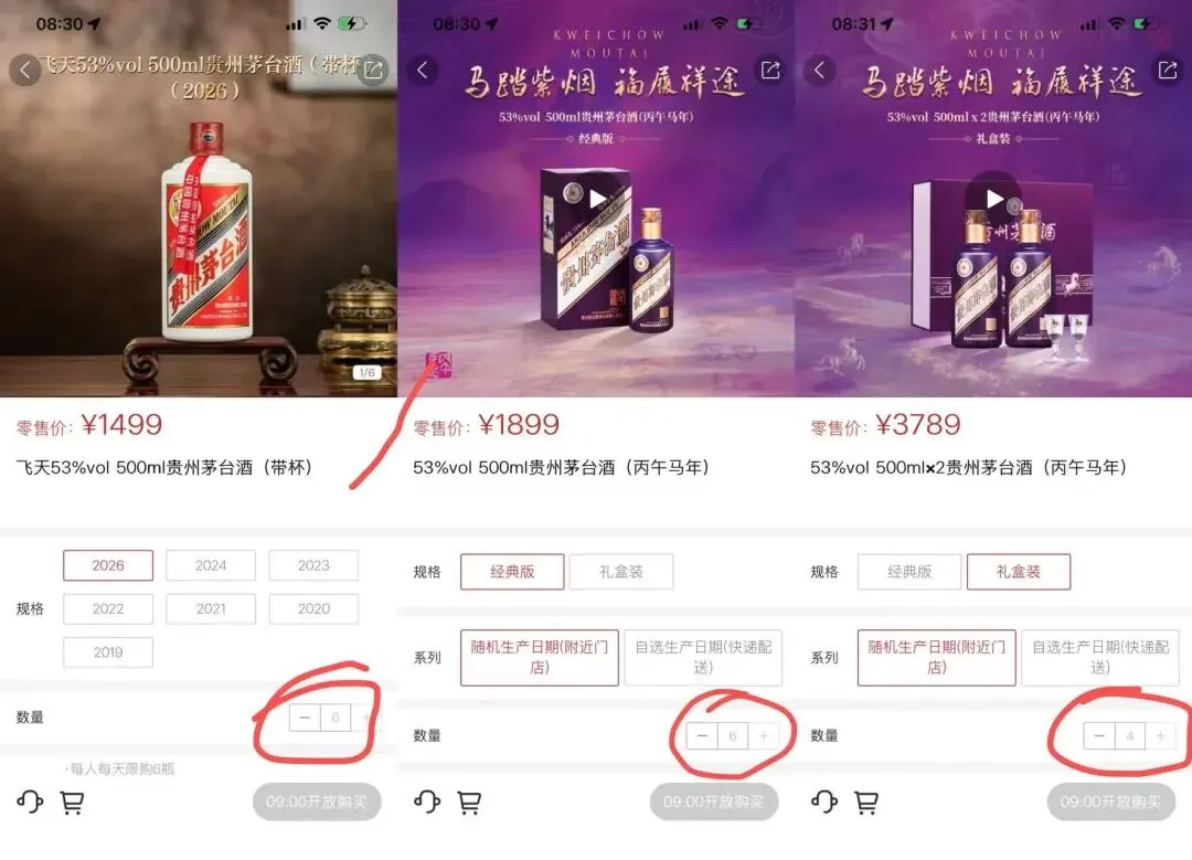4⃣️抢购技巧:点击不同年份即可实现刷新页面,不用退出再进。立即购买键亮起后改数量为6后连续点击购买,反复如此操作。是每隔几秒就会不定时补库存的,要坚持刷新购买,不要被上面提示的补库存时间所骗了。