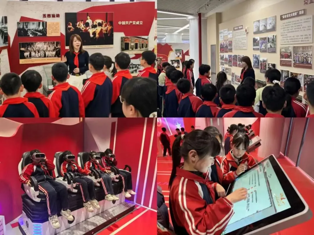 在少先队队史馆和红领巾体验馆,队员们开启了一场红色研学之旅。在讲解员老师的带领下,队员们了解了党领导下的中国少年儿童运动史,聆听了少年英雄故事,深刻感受到今天的幸福生活是无数先辈努力奋斗的结果。在红领巾体验馆,队员们沉浸式观看红色电影、参与少先队知识答题、打卡探游革命旧址,让红色基因深深植入队员们的心中,进一步增强了少先队组织的归属感、荣誉感和使命感。