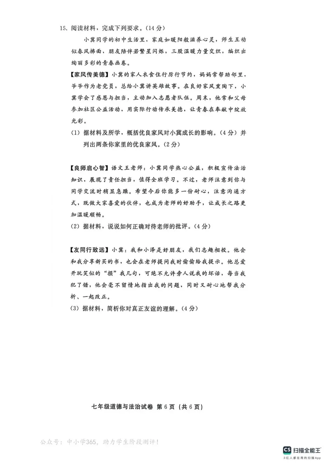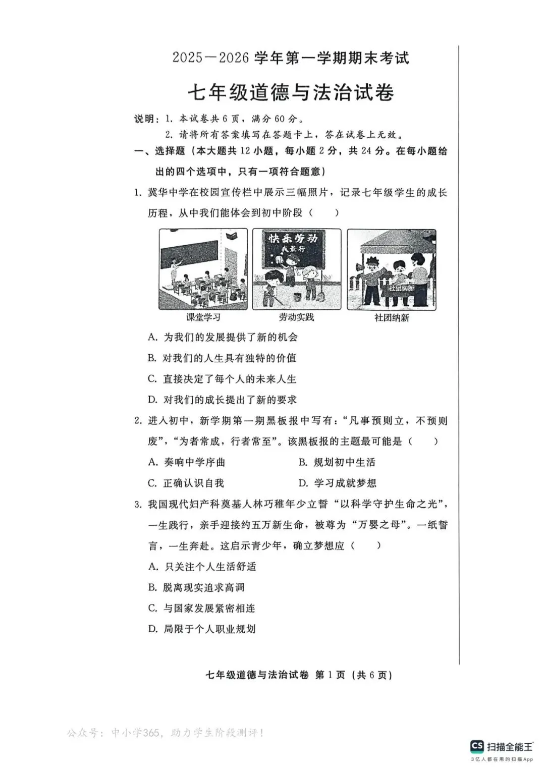 当前位置:首页>邢台>期末试卷|2026年1月邢台市七年级道法期末卷(含答案,后附PDF 打印版下载链接)