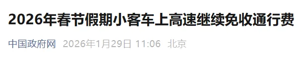 2026年春节假期高速免费时间
