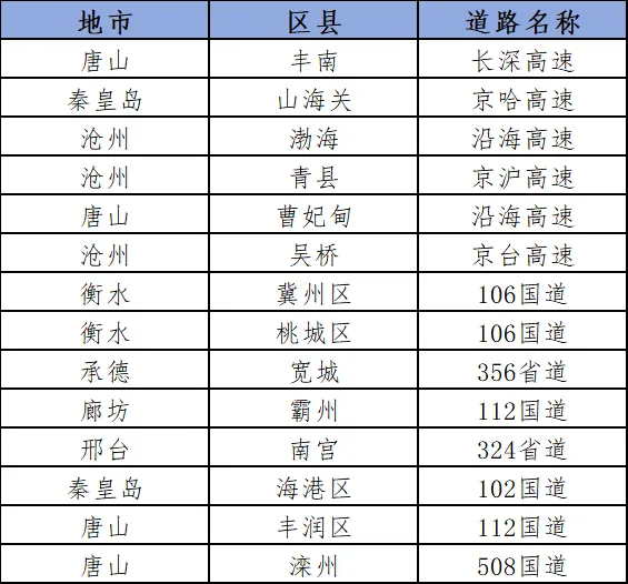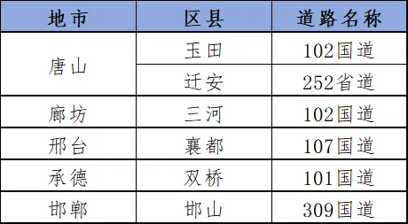 国省道大流量路段分散分布于唐山、廊坊、邢台、承德、邯郸。