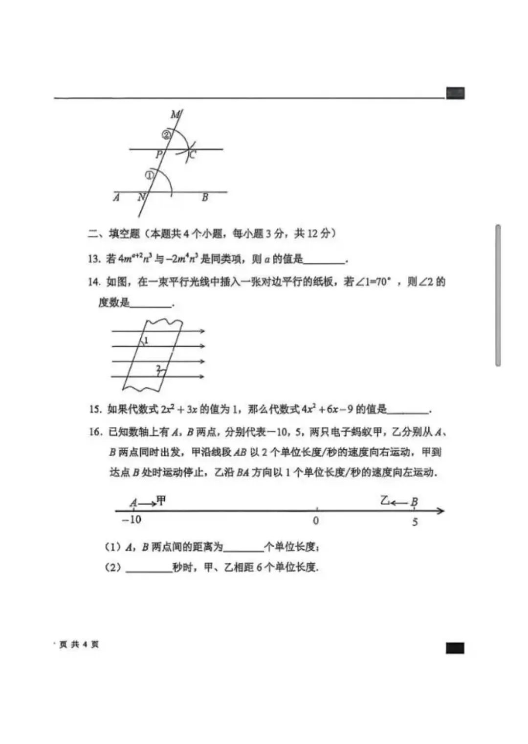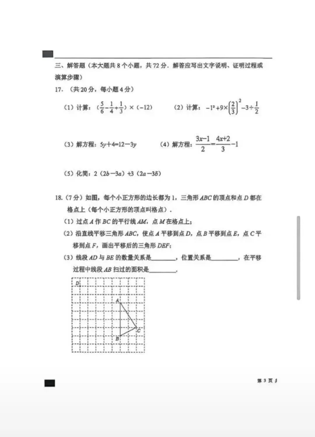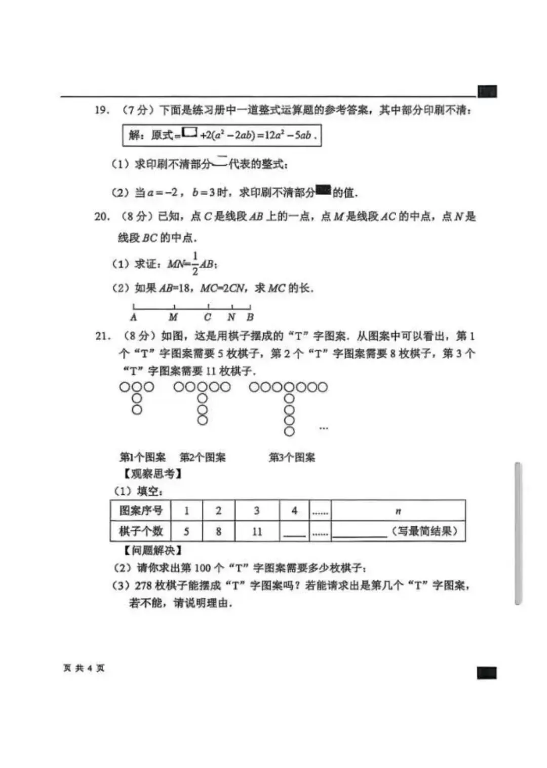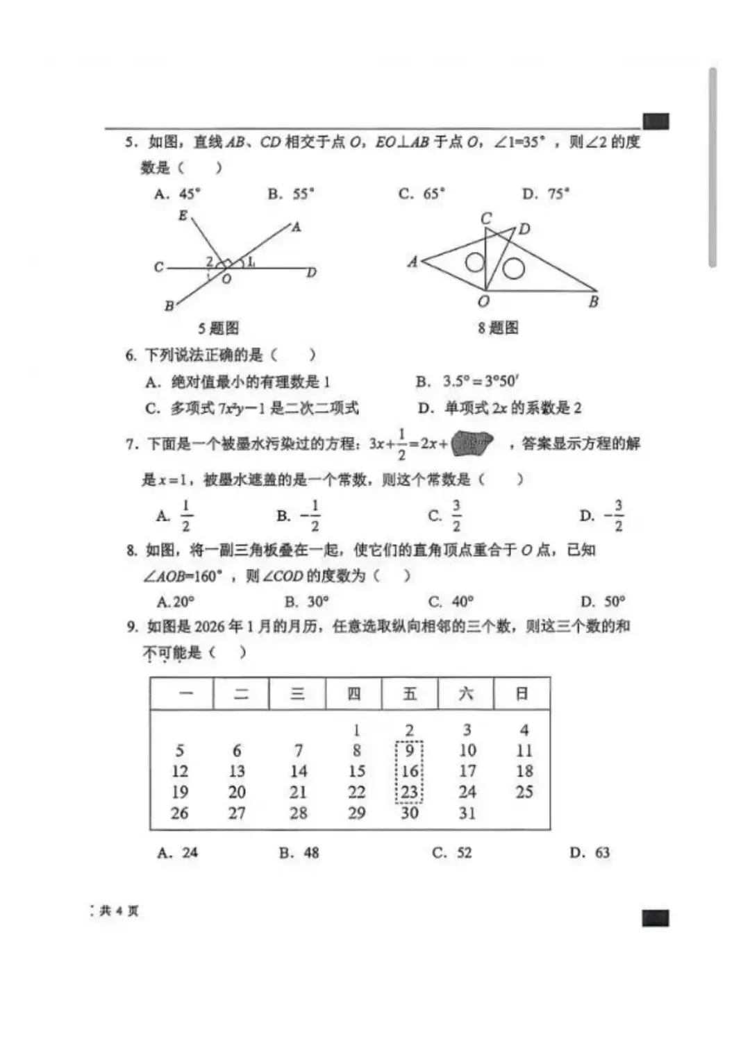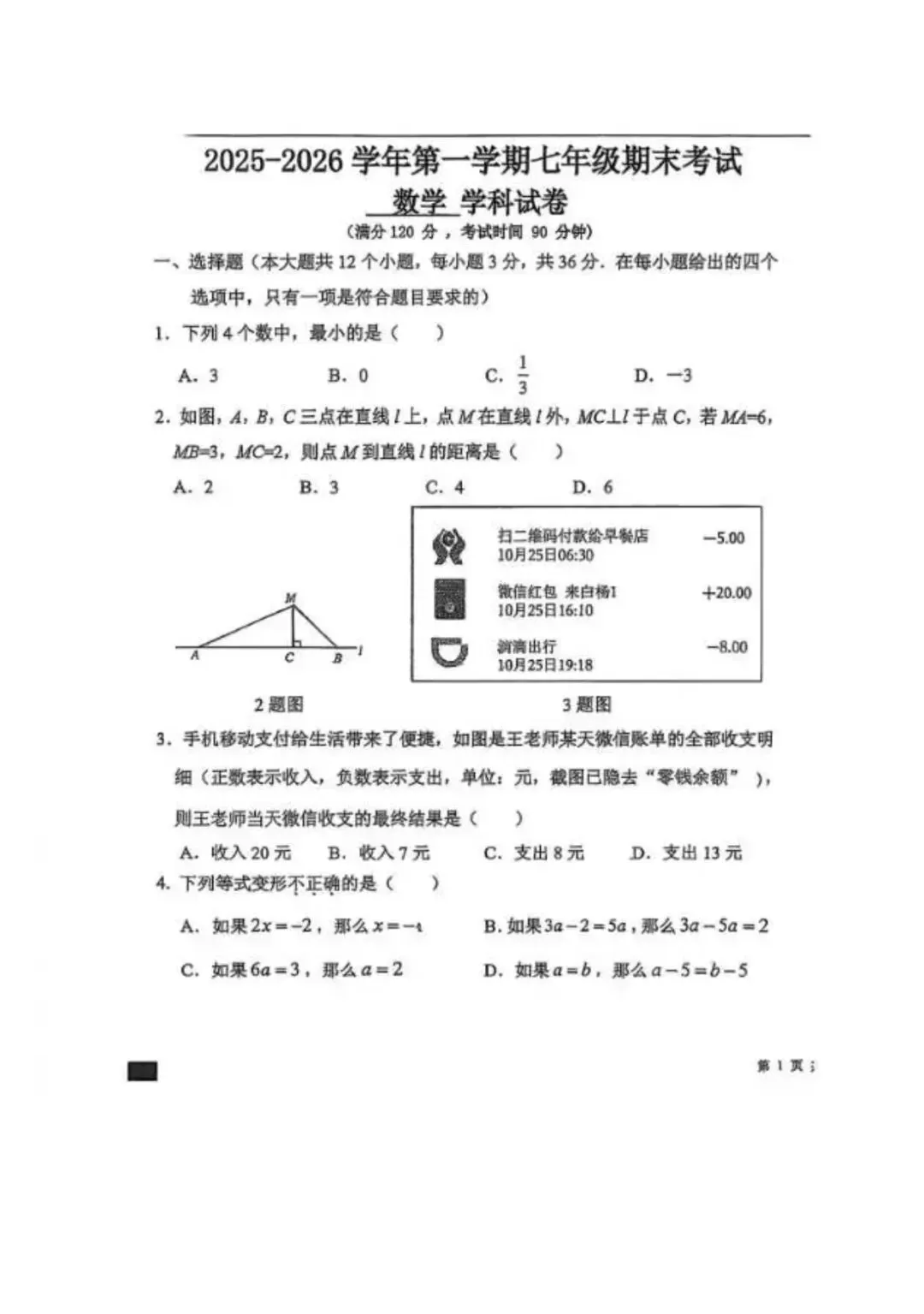26.1河北省期末考试七年级数学试卷含答案(冀教版)
