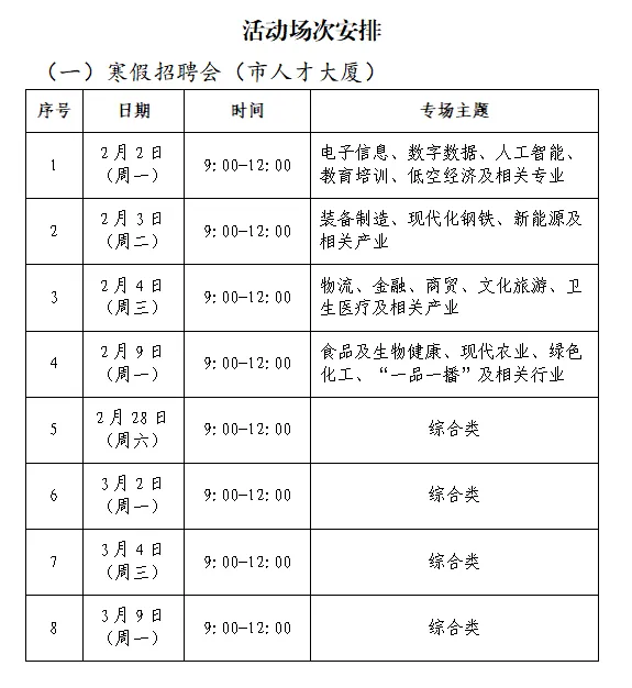 为深入贯彻落实“十万学子进邯郸”就业行动部署,利用寒假高校学子返乡的集中期,集中搭建高效引才交流平台,以强劲人才动能助推邯郸经济高质量发展,中共邯郸市委人才工作领导小组办公室定于2月2日起至3月9日举办寒假系列招聘活动。诚邀广大企业和求职者参会。